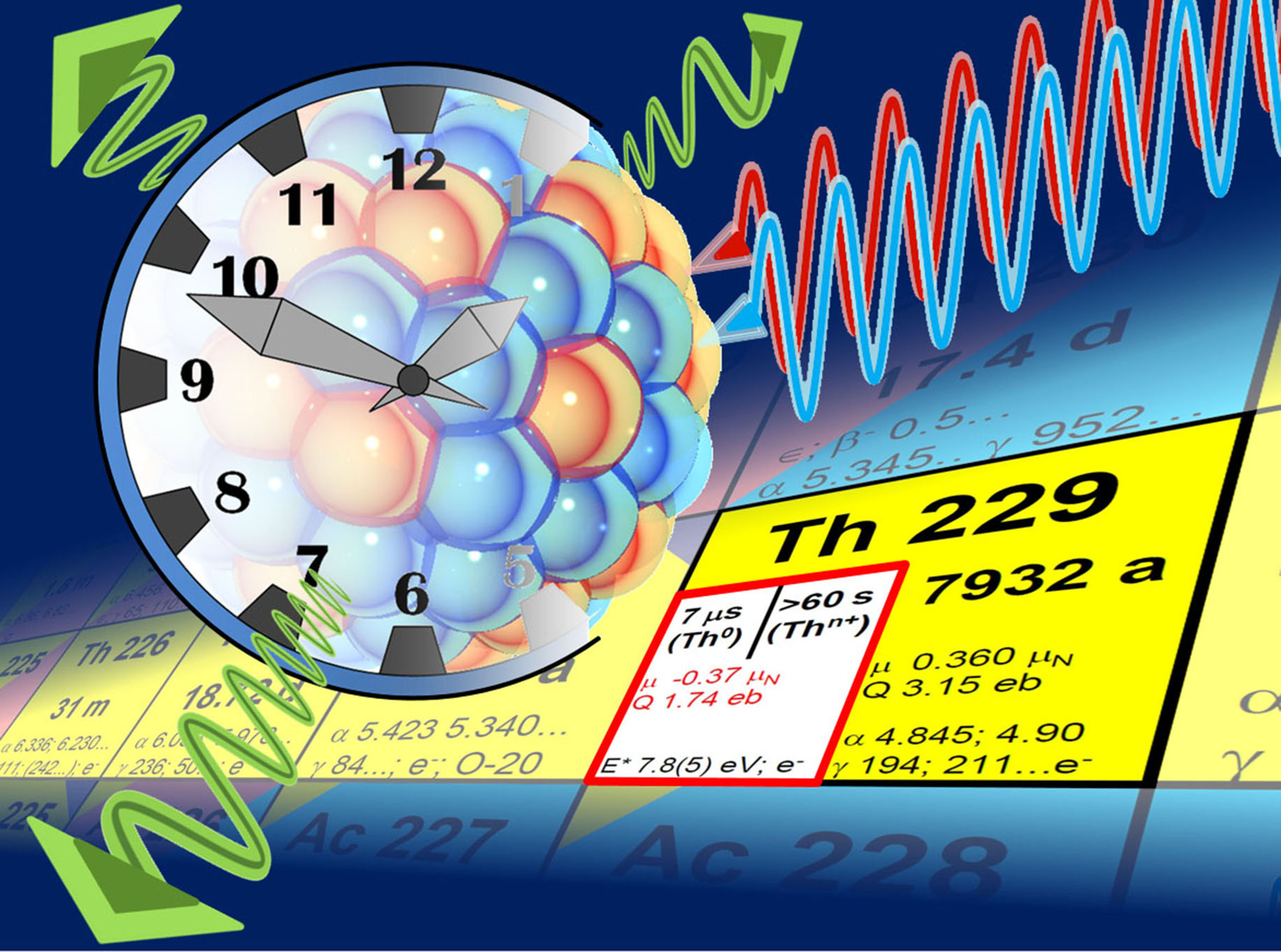 Bei bisherigen Atomuhren „tickt“ sozusagen die Atomhülle, bei der Thoriumuhr dagegen der Atomkern. (Ticken meint, dass man periodische Vorgänge, konkret die regelmäßige Abfolge von Tal und Berg von Mikrowellen- oder optischer Strahlung, zur Anregung von Elektronen bzw. des Kerns in den Atomen einer solchen Uhr nutzt.) Weil im Atomkern die Protonen und Neutronen wesentlich dichter gepackt und fester gebunden sind als die Elektronen in der Außenhülle, verspricht eine Kernuhr eine deutlich höhere Genauigkeit als bisherige Atomuhren. „Sie ist aber genau deswegen auch deutlich komplizierter zu realisieren,“ erläutert Dr. Ekkehard Peik, Physiker und Fachbereichsleiter an der PTB. Zusammen mit seinem Kollegen Dr. Christian Tamm hat er schon vor mehr als einem Jahrzehnt das Konzept für eine Thoriumuhr entwickelt. Thorium-229 besitzt als einzig bekanntes Atom einen isomeren Kernzustand, den man mit Lasertechnik, wie sie ähnlich auch bei heutigen Atomuhren genutzt wird, anregen kann. Aus dem Konzept wurde die intensive Forschungsarbeit verschiedenster Wissenschaftlergruppen weltweit. Auch durch die enge Kooperation verschiedener Institutionen ist die Thoriumuhr Schritt für Schritt näher gerückt.