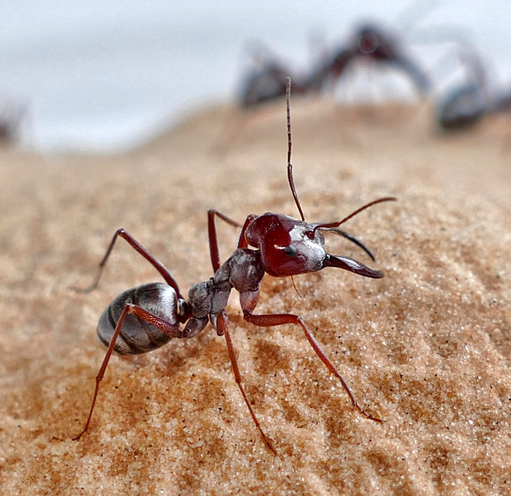 Silberameisen gelten als schnellste Ameisen der Welt - obwohl ihre Beine verhältnismäßig kurz sind. Daher haben Forschende der Universität Ulm den besonderen Laufstil dieses "Wüstenflitzers" auf einer Ameisen-Rennstrecke ergründet. Veröffentlicht wurde diese Entdeckung jüngst im „Journal of Experimental Biology“.