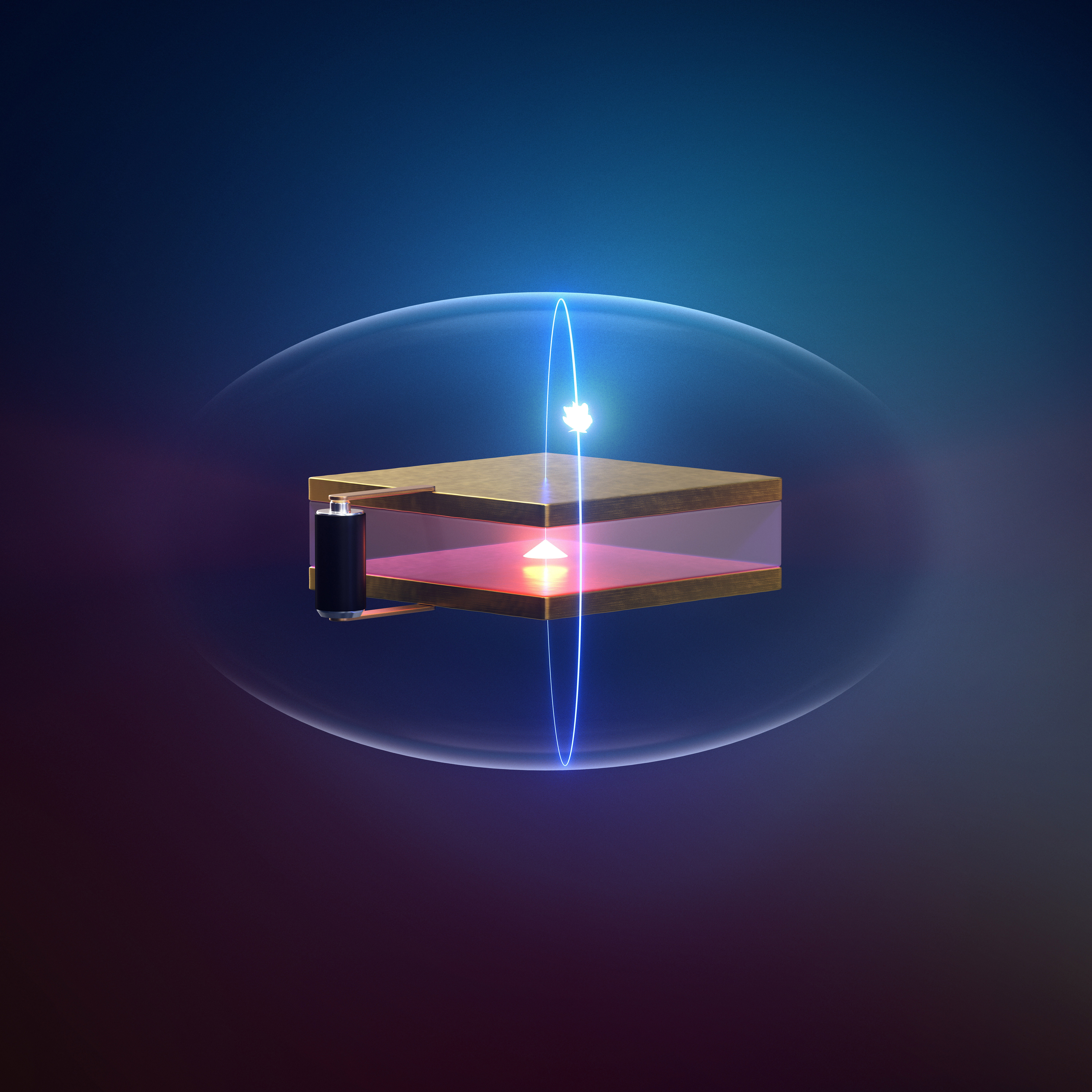 Normalerweise fliegen diese Lichtteilchen wie bei einer Glühbirne in alle Richtungen davon. Für ihr Experiment haben die Forscher den Quantenpunkt aber in einem Hohlraum mit spiegelnden Wänden eingeschlossen. Diese gekrümmten Spiegel werfen das emittierte Photon bis zu 10'000 Mal hin und her, wodurch eine Wechselwirkung von Licht und Materie einsetzt.