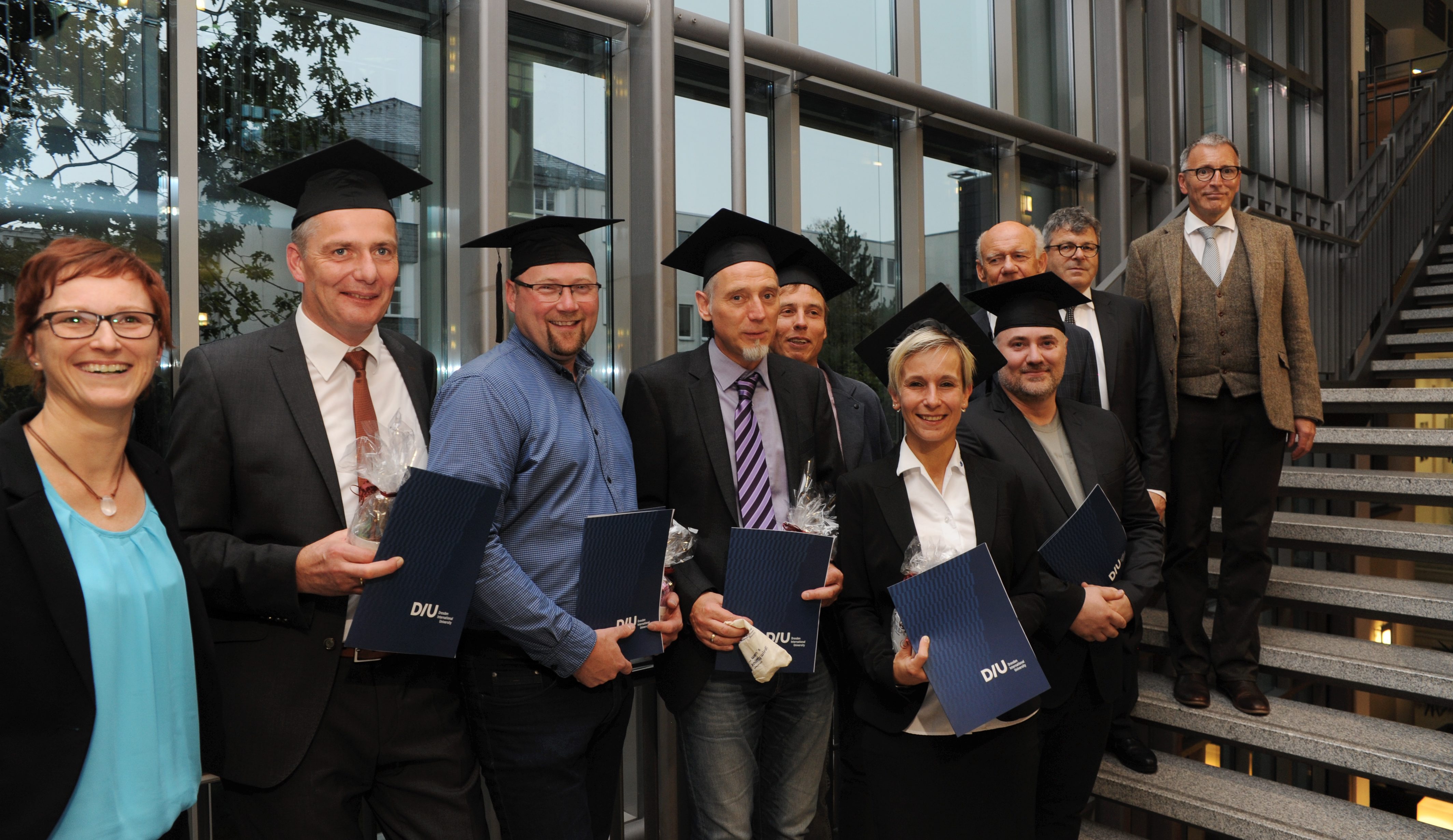 Ende September verteidigten 8 Studierende der DIU erfolgreich ihre Masterarbeiten im Studiengang Management Sicherheit und Gesundheit bei der Arbeit, M. Sc. In der feierlichen Atmosphäre des Akademiehotels Dresden erhielten Sie in Anwesenheit der wissenschaftlichen Leitung, Gästen und dem DIU-Präsidenten Prof. Dr. med. Richard H. W. Funk ihre wohl verdienten Urkunden. Einer von ihnen war Tobias Gürster, der eine Masterarbeit zum Thema: „Trianguläre Ermittlung der Auswirkungen der Arbeitsschutzorganisation auf die Kultur“ geschrieben hat. Vor dem Master absolvierte er ein Bachelorstudium im Bereich Physiotherapie. Mit dem Studiengang konnte er seine zwei Hauptinteressen – die Gesundheit und die Sicherheit - kombinieren. Entscheidend für ihn waren zudem die starke Praxisorientierung und die Studiendauer von nur zwei Jahren.
