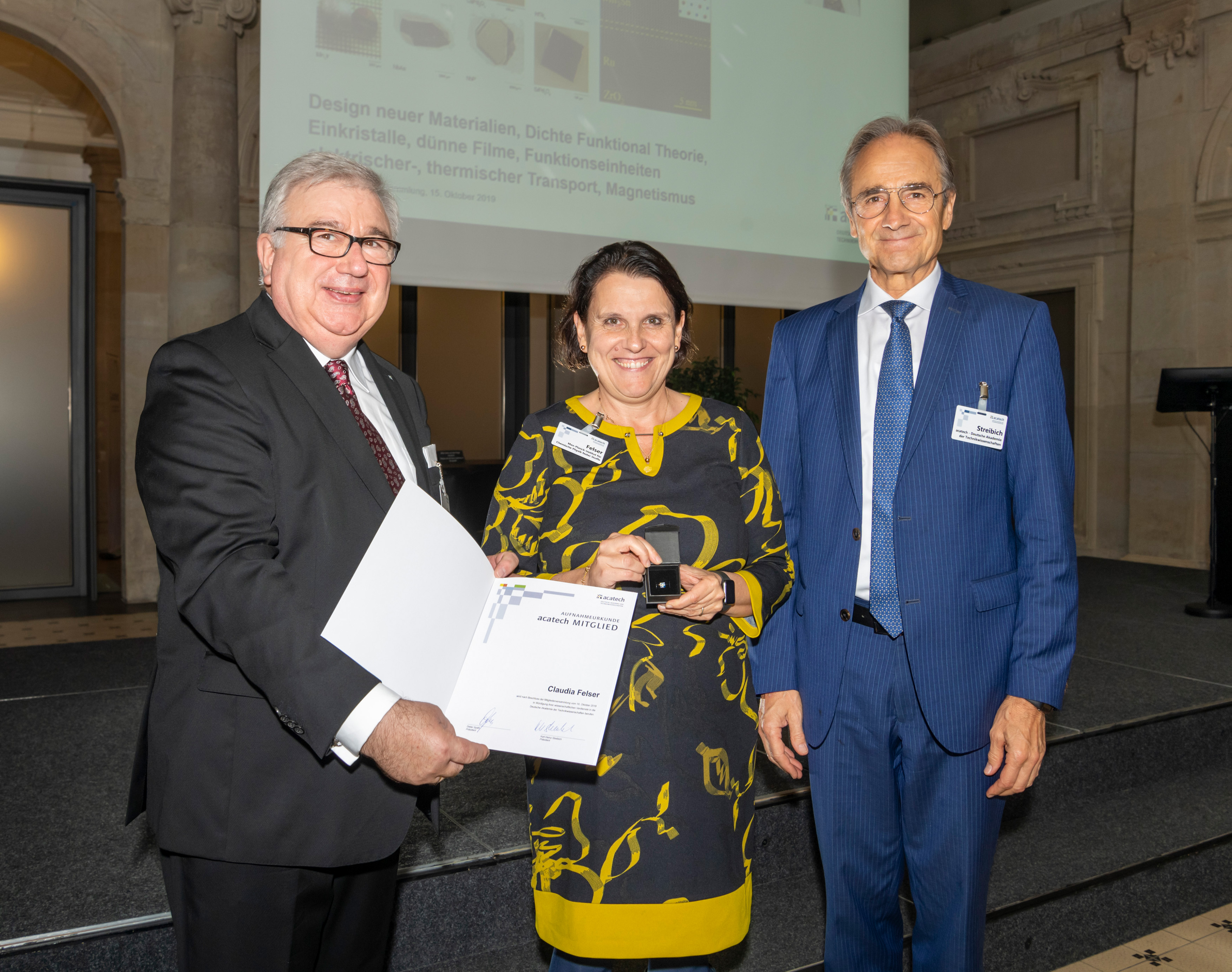 Auf der Mitgliederversammlung der acatech, Deutsche Akademie der Technikwissenschaften, wurde Claudia Felser am 16. Oktober 2019 ihre Mitgliedsurkunde verliehen.