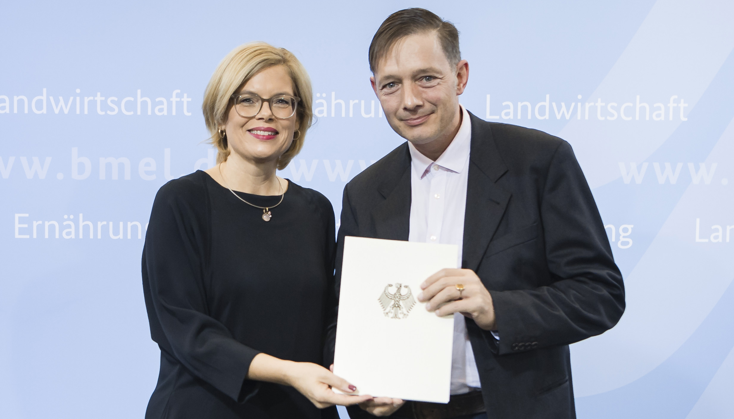 Bundeslandwirtschaftsministerin Julia Klöckner überreichte den Förderbescheid Mitte Oktober in Berlin an Verbundprojektleiter Prof. Dr. Patrick Noack von der Fakultät 'Landwirtschaft, Lebensmittel und Ernährung' der HSWT. Das über drei Jahre laufende Projekt wird vom BMEL mit einer Summe von mehr als 1,2 Millionen Euro gefördert und am Biomasse-Institut am Campus Triesdorf der Hochschule Weihenstephan-Triesdorf (HSWT) bearbeitet. Die Teilprojektleitung liegt bei Prof. Dr. Bernhard Bauer und Prof. Dr. Peter Breunig.