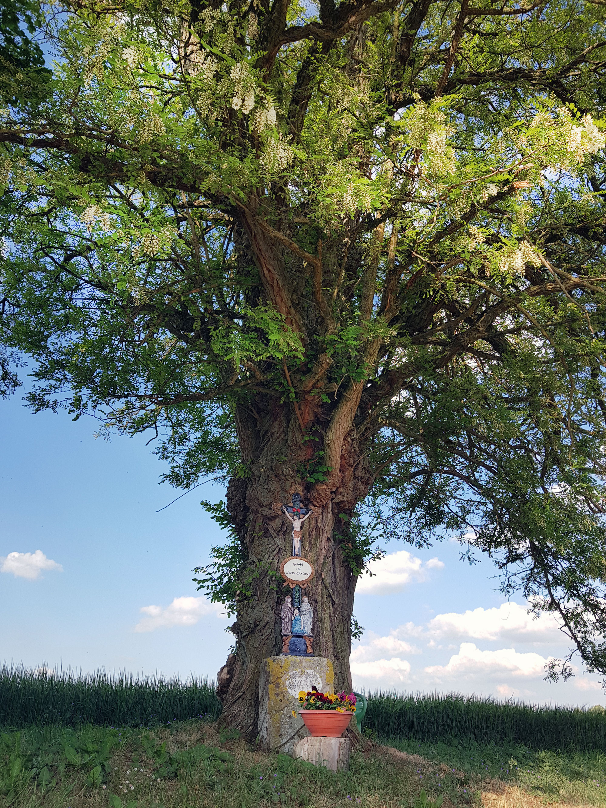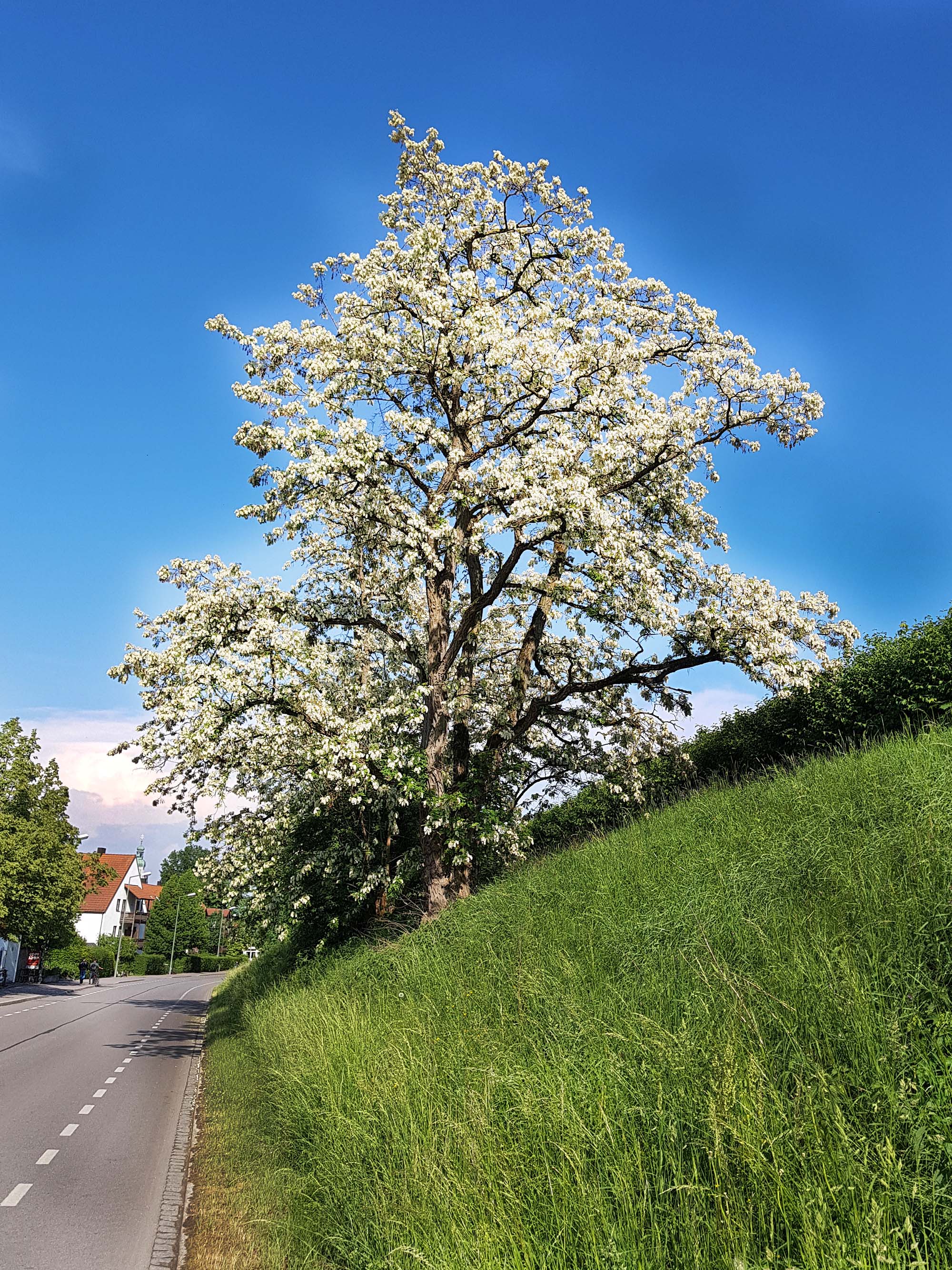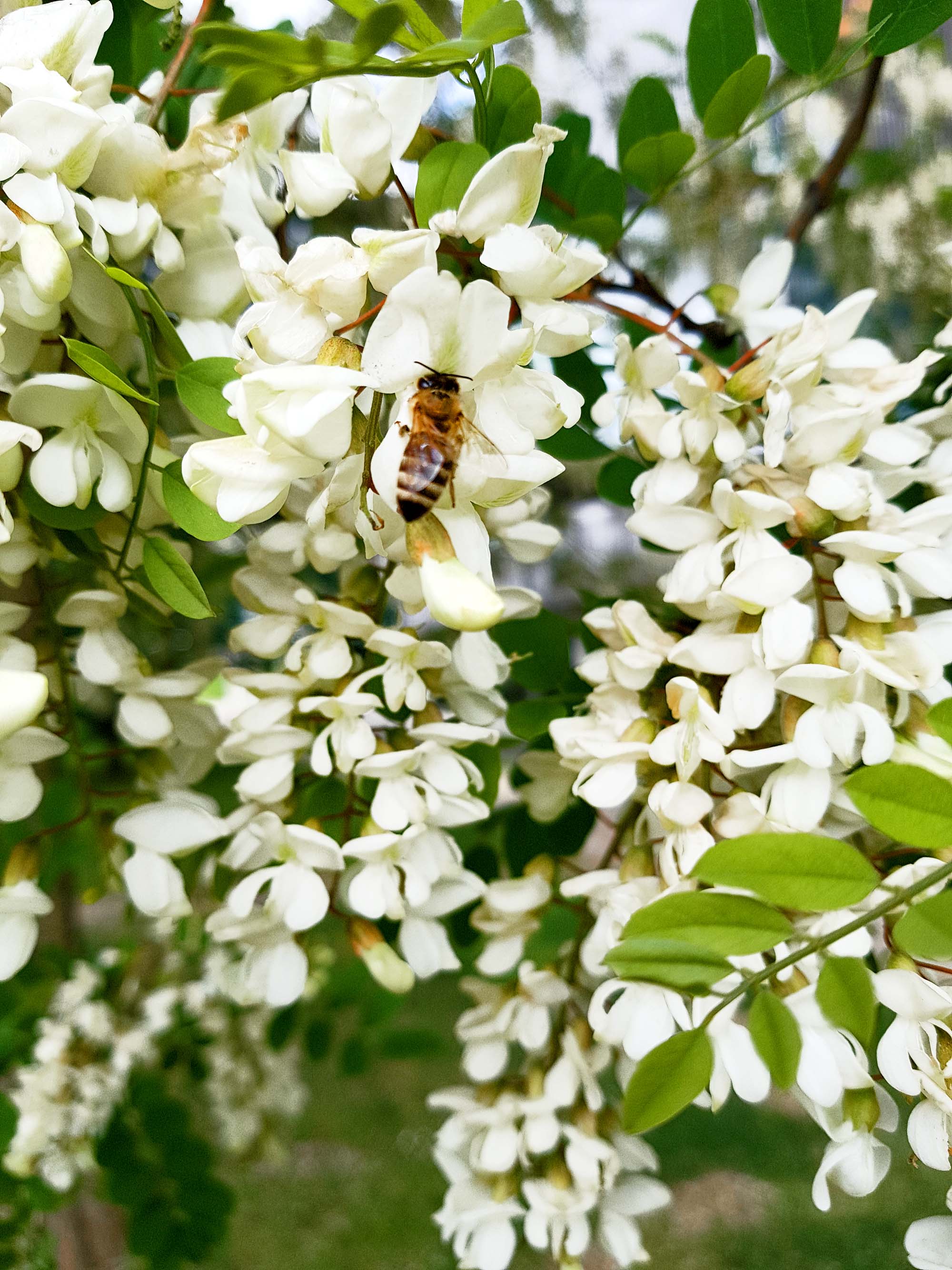 Bei uns ist die Robinie ja nicht heimisch, aber unsere blütenbesuchenden Insekten, wie die Honigbiene, aber auch andere Insekten, wie zum Beispiel Schwebfliegen, lieben die Blüten der Robinie. Die Robinie blüht circa 2 Wochen so Ende Mai/Anfang Juni, sie ist hervorragender Nektarspender. Ihr Nektar enthält viel Fruktose und bleibt daher lange flüssig. Die weißen, duftenden Blüten sind eine wahre Augenweide und in Städten, Parks, Grünanlagen, an Waldrändern ist die Robinie ein ornamentaler Schmuckbaum.