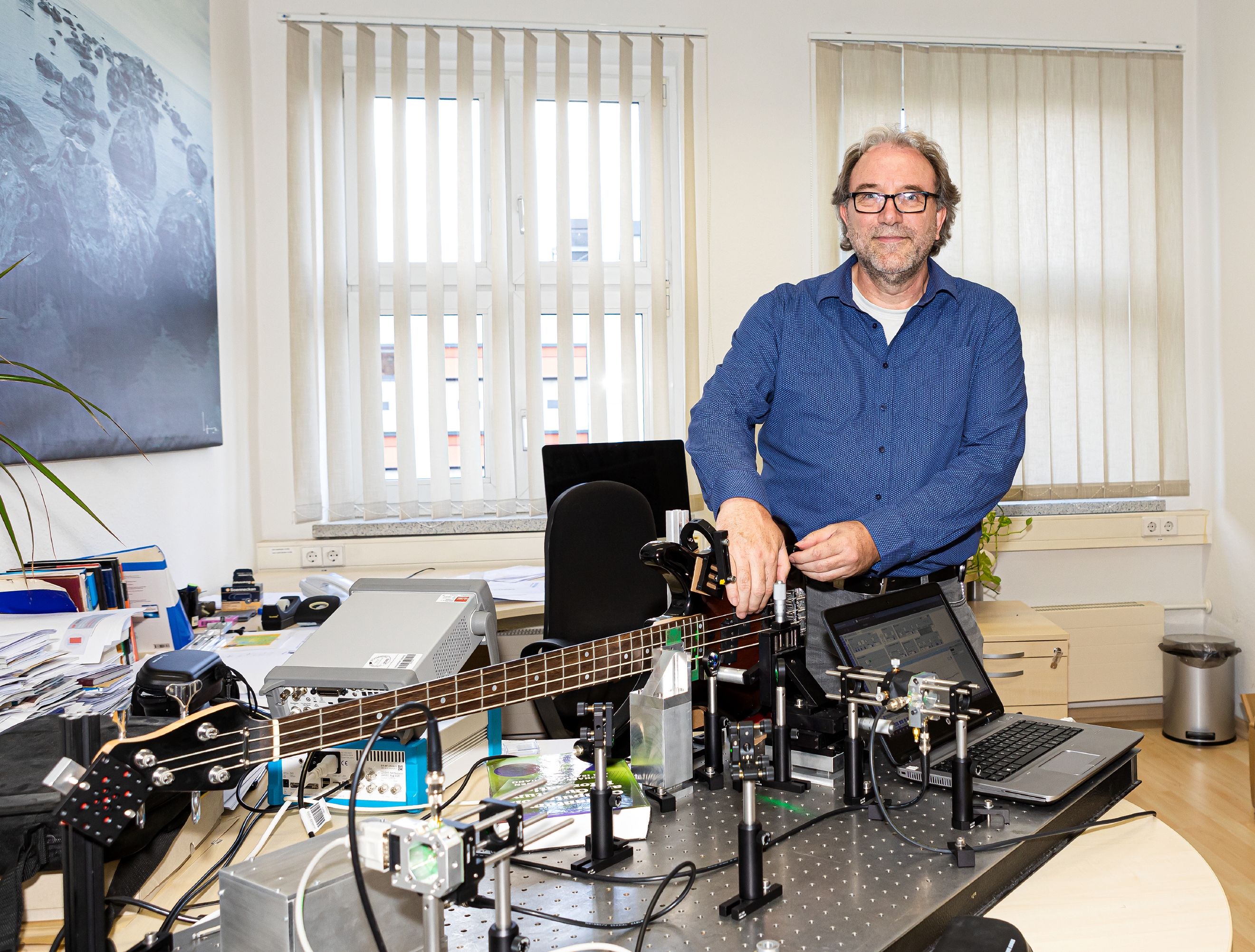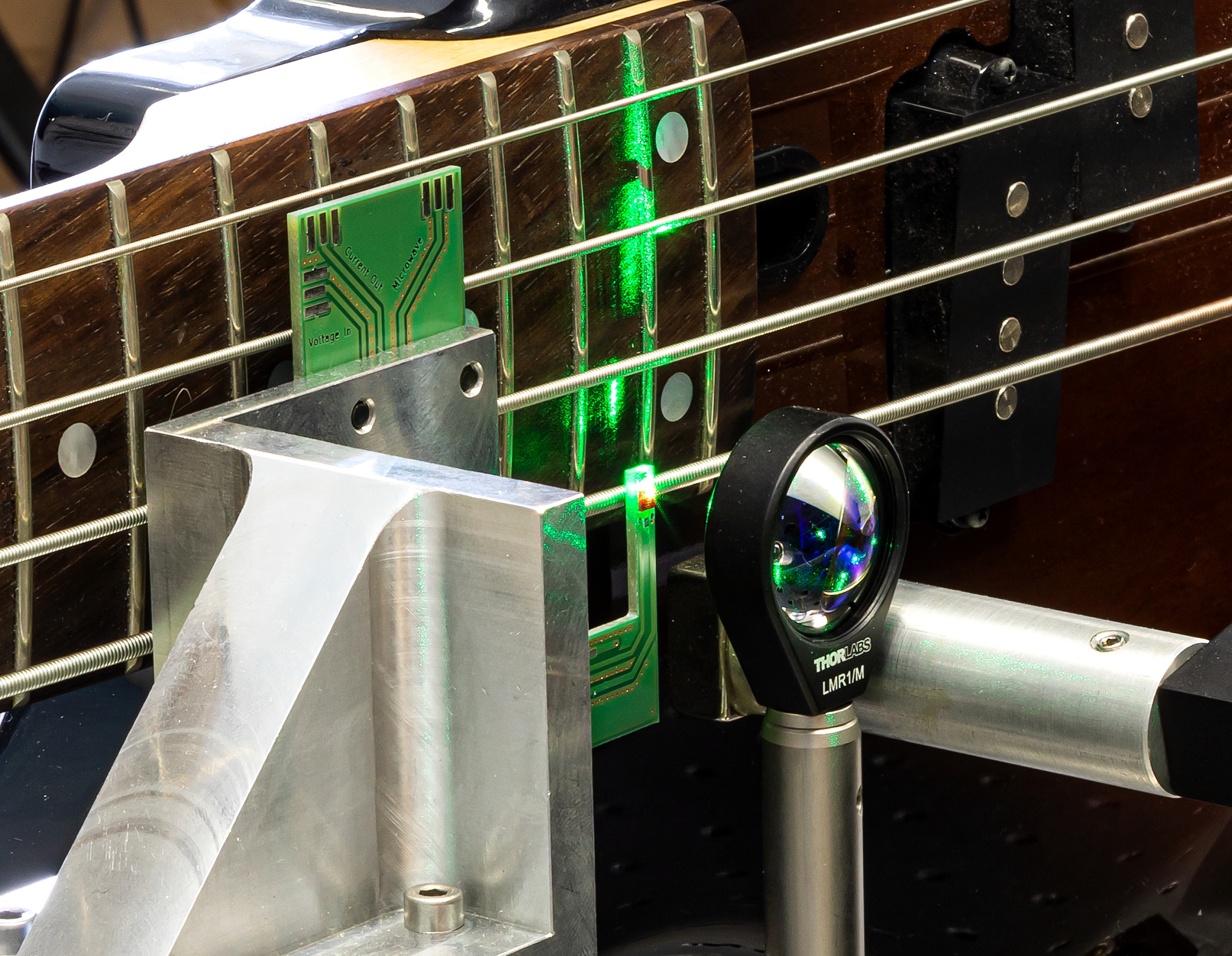„Dadurch kann man Quantensysteme bei Raumtemperatur bearbeiten. Bisher ging das nur im Labor bei sehr tiefen Temperaturen in Kryostaten - das sind überdimensionale, kostspielige Thermoskannen. Das macht die ganze Sache so spannend. Das bedeutet, man kann einen Quantencomputer oder einen Quantensensor für den Alltagsgebrauch herstellen“, erklärt Prof. Meijer. In einem anschaulichen Experiment nutzten die Forscher einen roten Diamanten als extrem empfindlichen Magnetsensor, um eine E-Gitarre zum Klingen zu bringen. Hierbei wird die Position der einzelnen Saiten mit sehr hoher Geschwindigkeit und Auflösung abgetastet und danach der Ton errechnet.
