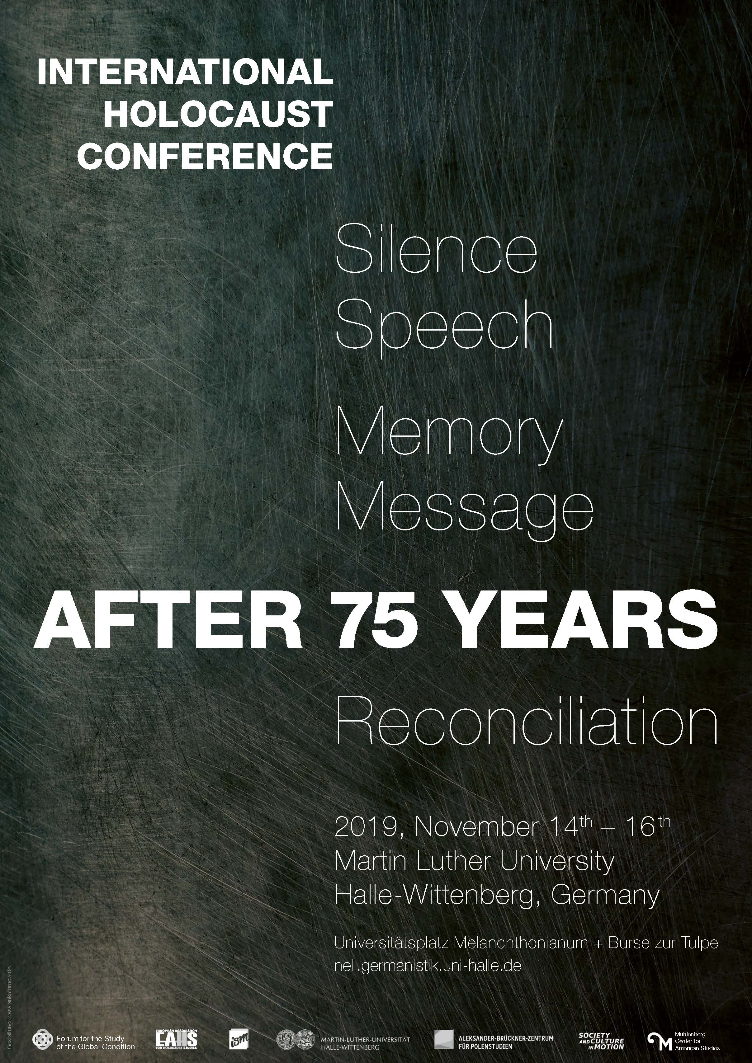 "Silence, Speech, Memory, Message, and Reconciliation" - after 75 years": Unter diesem Titel diskutieren vom 14. bis zum 16. November 2019 an der Martin-Luther-Universität Halle-Wittenberg (MLU) Wissenschaftler und Wissenschaftlerinnen aus aller Welt neue Ergebnisse der Holocaust-Forschung. Dabei spielen insbesondere die aktuellen politischen und kulturellen Entwicklungen in Europa eine Rolle.