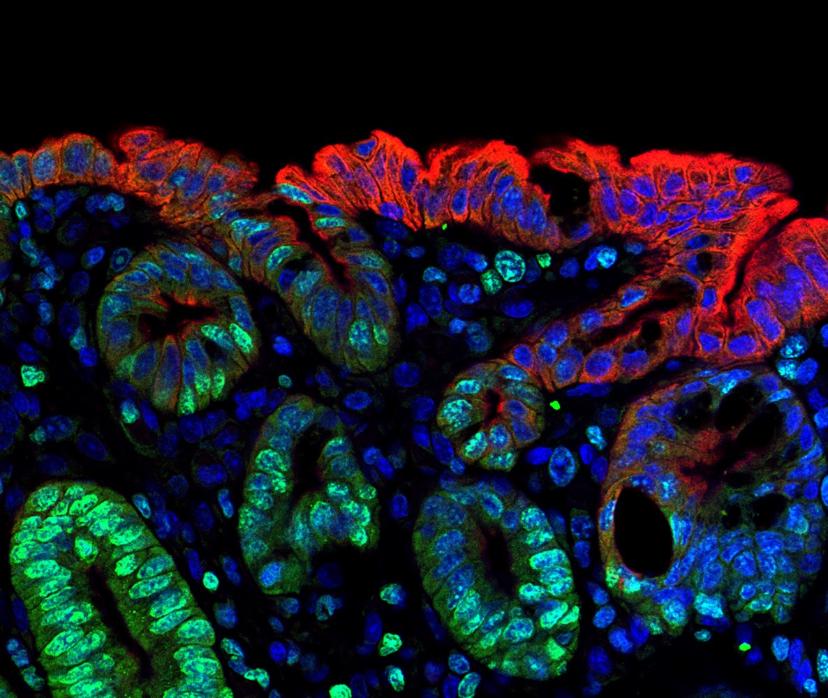 Als Grenzfläche zwischen dem körpereigenen Gewebe und körperfremdem Material ist der Darm verschiedensten Einflüssen ausgesetzt. Viele dieser Umweltfaktoren sind nützlich oder sogar überlebenswichtig. Einige jedoch, wie Krankheitserreger oder giftige Nahrungsbestandteile, können die Zellen, die die Darmwand auskleiden, schädigen und zu einer Entzündung führen. In solchen Fällen kann der Körper sein Regenerationsprogramm aktivieren: Stammzellen, die in Vertiefungen der Darmwand liegen, teilen sich häufiger. Ihre Tochterzellen ersetzen dann die geschädigten Zellen an der Oberfläche des Gewebes und stellen die Funktionsfähigkeit der Darmbarriere wieder her. In manchen Fällen jedoch zerstört das körperfremde Material nicht nur die Zellen an der Oberfläche der Darmwand, sondern auch die tiefliegenden Stammzellen. Wie sich die Darmbarriere selbst dann noch erholen kann, hat ein Team unter Leitung von Dr. Michael Sigal von der Medizinischen Klinik mit Schwerpunkt Hepatologie und Gastroenterologie am Campus Charité Mitte und Campus Virchow-Klinikum jetzt im Tiermodell untersucht.