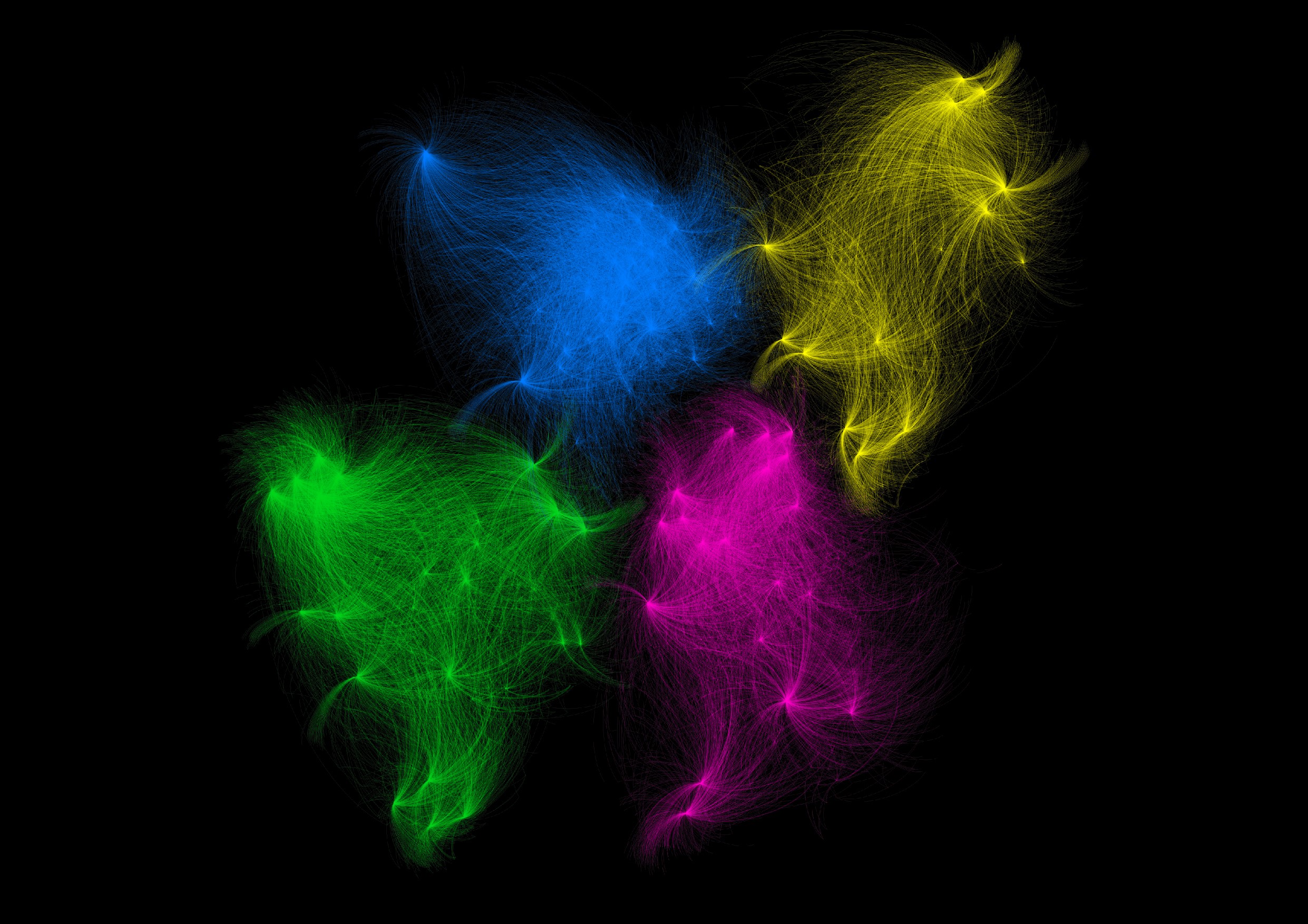 The illustration shows a network of 212 microRNAs and their 12,495 targeted genes, deconstructed into four fields according to their sex-specific changes. (Copyright: Sebastian Lobentanzer)