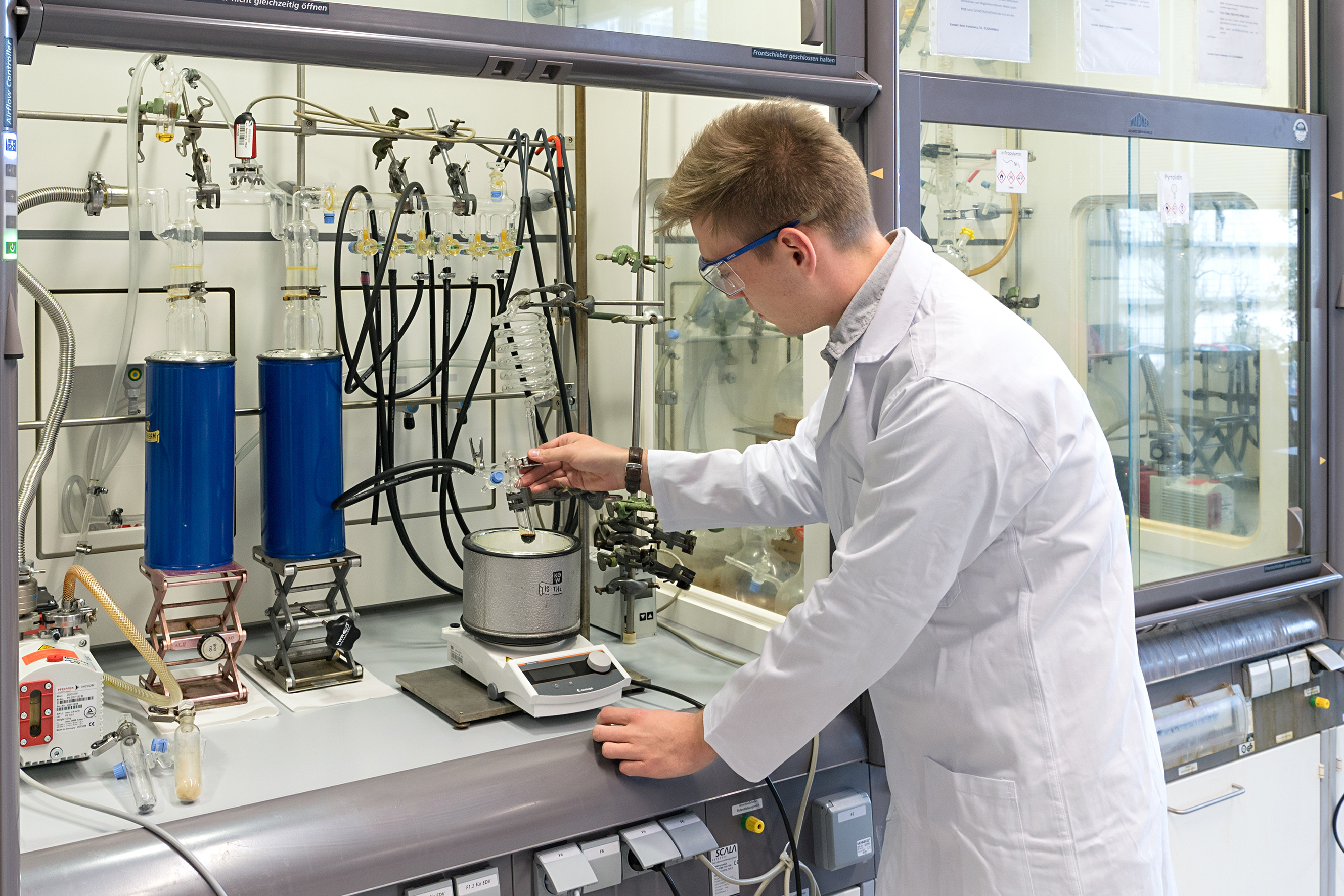Beim Zusammenschmelzen von Kalium und Silicium entsteht eine Verbindung aus 12 Kalium- und 17 Silicium-Atomen, ein graues Pulver. Mit einem Trick gelang es nun Erstautor Lorenz Schiegerl in flüssigem Ammoniak die löslichen, neunatomigen Cluster zu stabilisieren: Zum Ammoniak gab er ein organisches Molekül hinzu, das die Kalium-Atome einschließt.