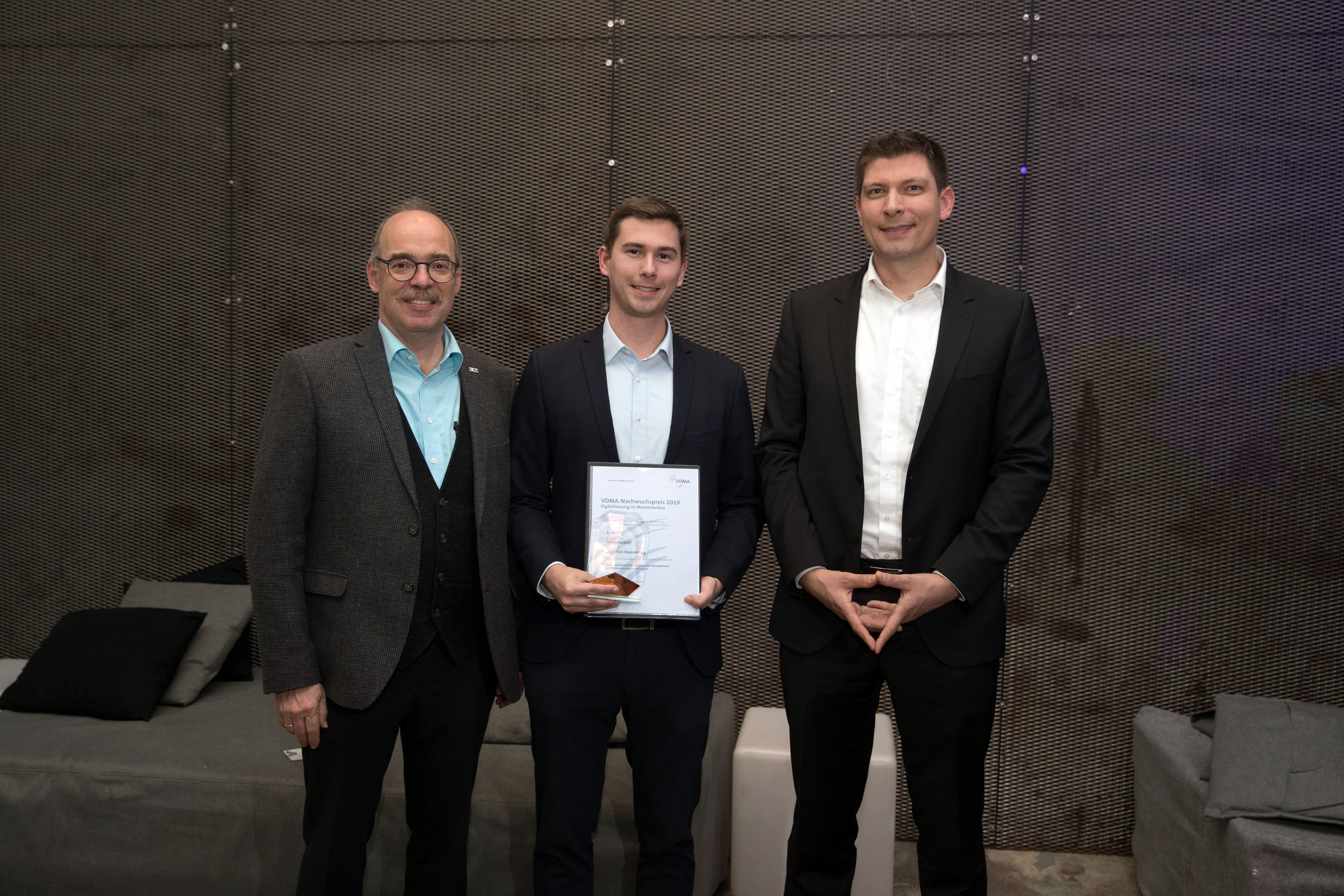 Mit dem Nachwuchspreis „Digitalisierung im Maschinenbau“ zeichnen der VDMA Software und Digitalisierung und die VDMA Initiative „Maschinenhaus – Plattform für innovative Lehre“ herausragende Abschlussarbeiten aus den Bereichen Ingenieurwissenschaften und Informatik aus. Professorinnen und Professoren deutscher Hoch-schulen nominierten hierfür zum dritten Mal ihre besten Studierenden. Insgesamt 31 Absolventinnen und Absolventen von 20 Hochschulstandorten aus Deutschland standen mit ihren Abschlussarbeiten aus Bachelor- und Masterstudiengängen zur Wahl. Die Preisverleihung fand am gestrigen Donnerstag, 14. 11., in Würzburg statt.
