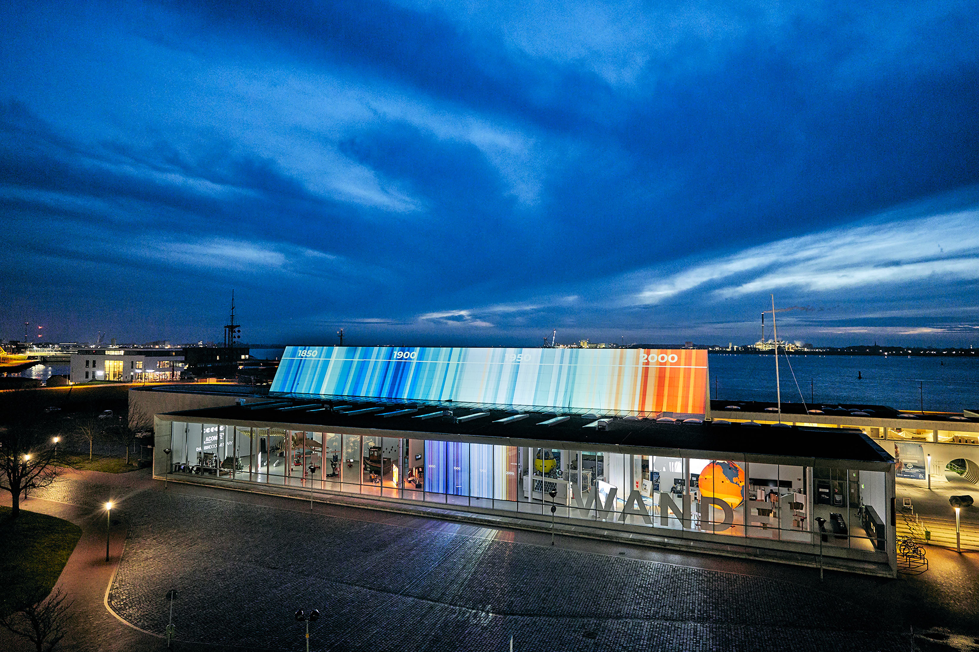 Kalbende Gletscher stürzen ins Meer, Polarlichter ziehen über das Spitzdach des Bangert-Baus des Deutschen Schifffahrtsmuseums (DSM) / Leibniz-Institut für Maritime Geschichte. Auszüge einer Dokumentation der Apnoe-Taucherin Anna von Boetticher zeigen beeindruckende Unterwasseraufnahmen des Polarmeers. Animationen wissenschaftlicher Forschungsinstitute sowie Infografiken des bekannten Klimatologen Ed Hawkins sind Teil der Medieninstallation "Screening Northern Lights", die am heutigen Freitag, 15. November, gemeinsam mit der neuen Sonderausstellung "SEA CHANGES – Welt und Meer im Wandel" Eröffnung feiert.