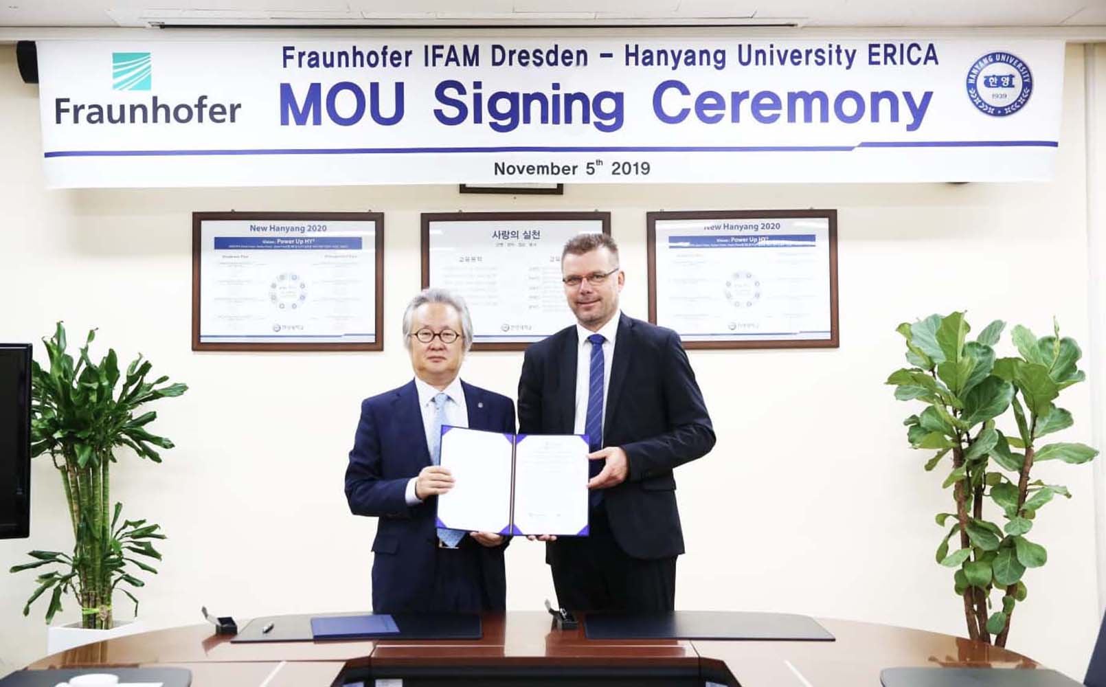 Am 5. November 2019 unterzeichnete Dr. Thomas Weißgärber, Leiter des Dresdner Fraunhofer-Institutes für Fertigungstechnik und Angewandte Materialforschung IFAM, ein Memorandum of Understanding mit der koreanischen Hanyang University, mit dem besonders die Beziehungen zum anwendungsorientierten Forschungsbereich ERICA (Education-Research-Industry Cluster at Ansan) vorangetrieben werden sollen.