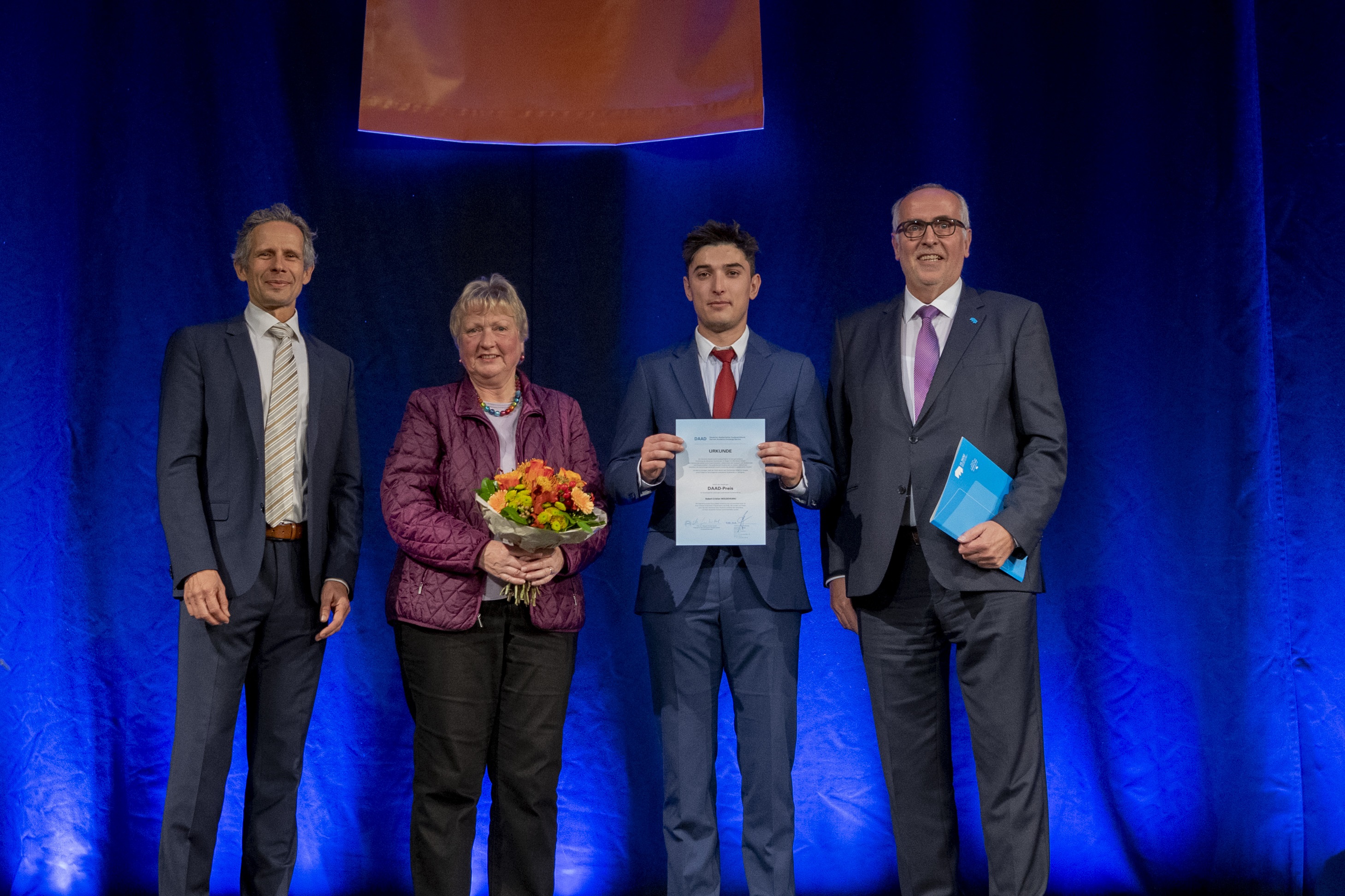 Dank seiner herausragenden Leistungen im Studium und seinem gesellschaftlichen Engagement erhält Robert Moldoveanu den DAAD-Preis. Der Preis ist mit 1000,- Euro dotiert und wird den Hochschulen vom Deutschen Akademischen Austauschdienst zur Verfügung gestellt. Mit diesem Preis sollen ausländische Studierende für besondere akademische Leistungen und bemerkenswertes gesellschaftliches Engagement ausgezeichnet werden.