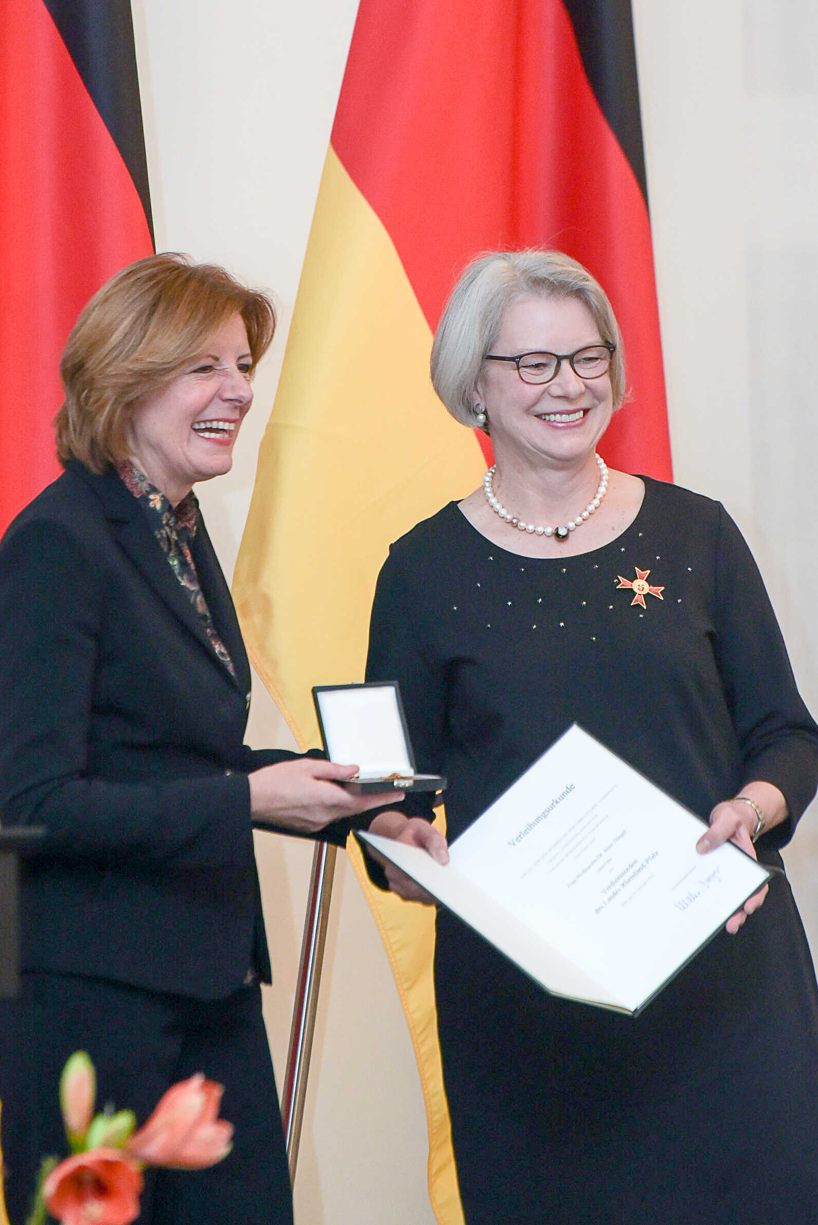 »Durch Ihr ehrenamtliches Wirken trugen Sie über viele Jahre hinweg zur Funktionsfähigkeit des Wissenschaftssystems der Bundesrepublik Deutschland bei«, so die Ministerpräsidentin Malu Dreyer in ihrer Urteilsbegründung zur Verleihung der höchsten Auszeichnung des Landes Rheinland-Pfalz an Irene Dingel. Die Ehrung fand im Rahmen einer Feierstunde am 25. November 2019 im Festsaal der Staatskanzlei Mainz statt.