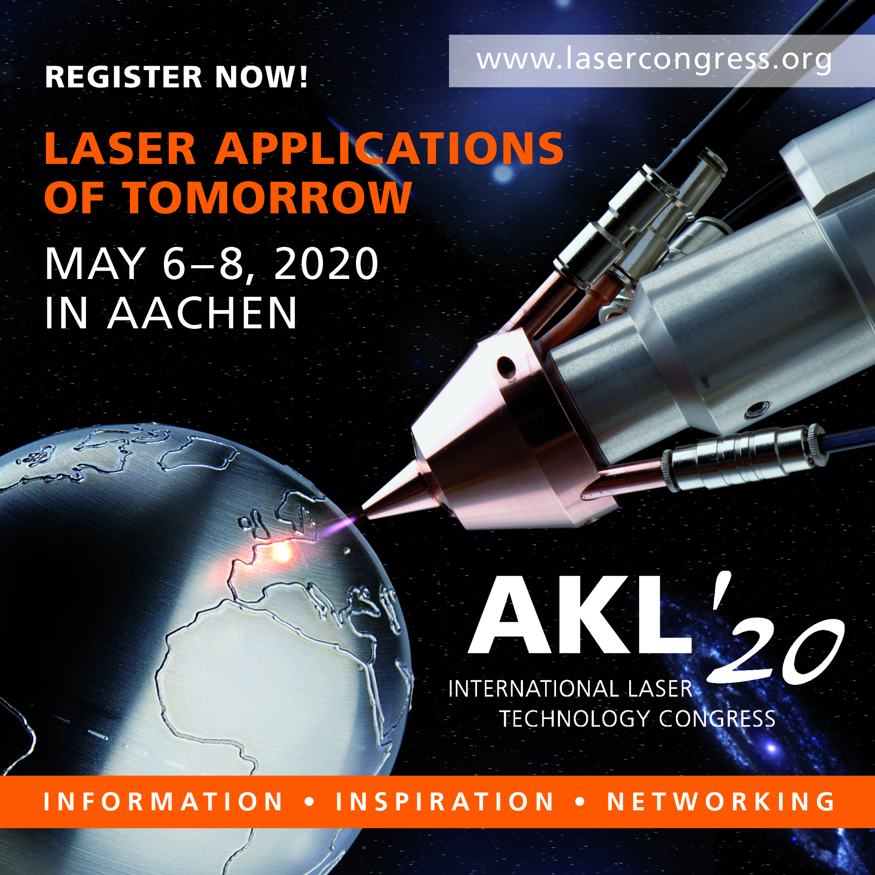 Vom 6. bis 8. Mai 2020 treffen sich zum 13. Mal Laserhersteller und -anwender unterschiedlicher Branchen auf dem AKL’20. Mit über 600 Teilnehmern, 87 Referenten und über 50 Firmen auf der konferenzbegleitenden Sponsoren-Ausstellung hat sich der »AKL – International Laser Technology Congress« in Europa als führendes Forum für angewandte Lasertechnik in der Produktion etabliert. Interessenten können ab sofort unter www.lasercongress.org das Programm einsehen und sich zum AKL’20 anmelden.