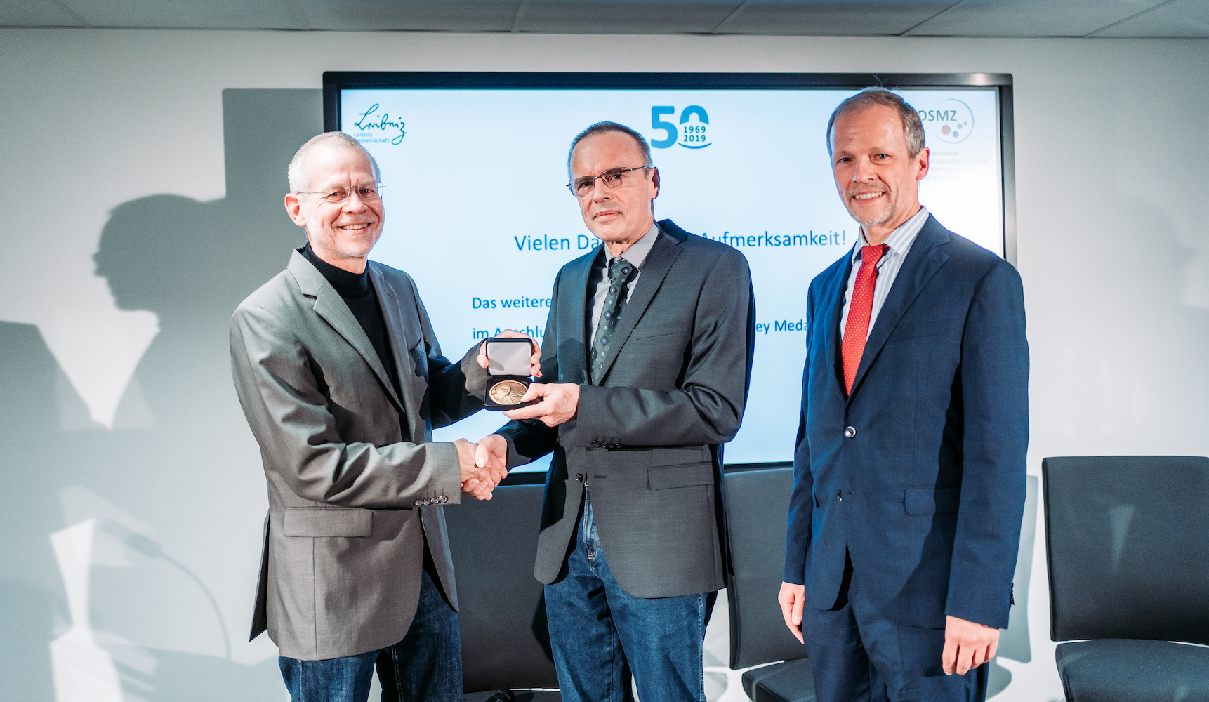 Im Rahmen der Feierlichkeiten zum 50jährigen Jubiläum des Leibniz-Instituts DSMZ-Deutsche Sammlung von Mikroorganismen und Zellkulturen GmbH wurde der Chemiker Dr. Peter Schumann für seine Verdienste um das Wissen der Diversität und Systematik von Bakterien (Taxonomie) mit der international renommierten Bergey Medal ausgezeichnet. Die anwesende Bundesforschungsministerin Anja Karliczek gratulierte zu dieser Auszeichnung, die vom Bergey’s Manual Trust verliehen wird. „Peter Schumann ist weltweit einer der letzten beiden ausgewiesenen Experten im Bereich der chemischen Analytik von Bakterienzellwänden“, hob Prof. Dr. Jörg Overmann, Wissenschaftlicher Direktor des Leibniz-Instituts DSMZ, die Bedeutung der wissenschaftlichen Expertise des Preisträgers hervor.