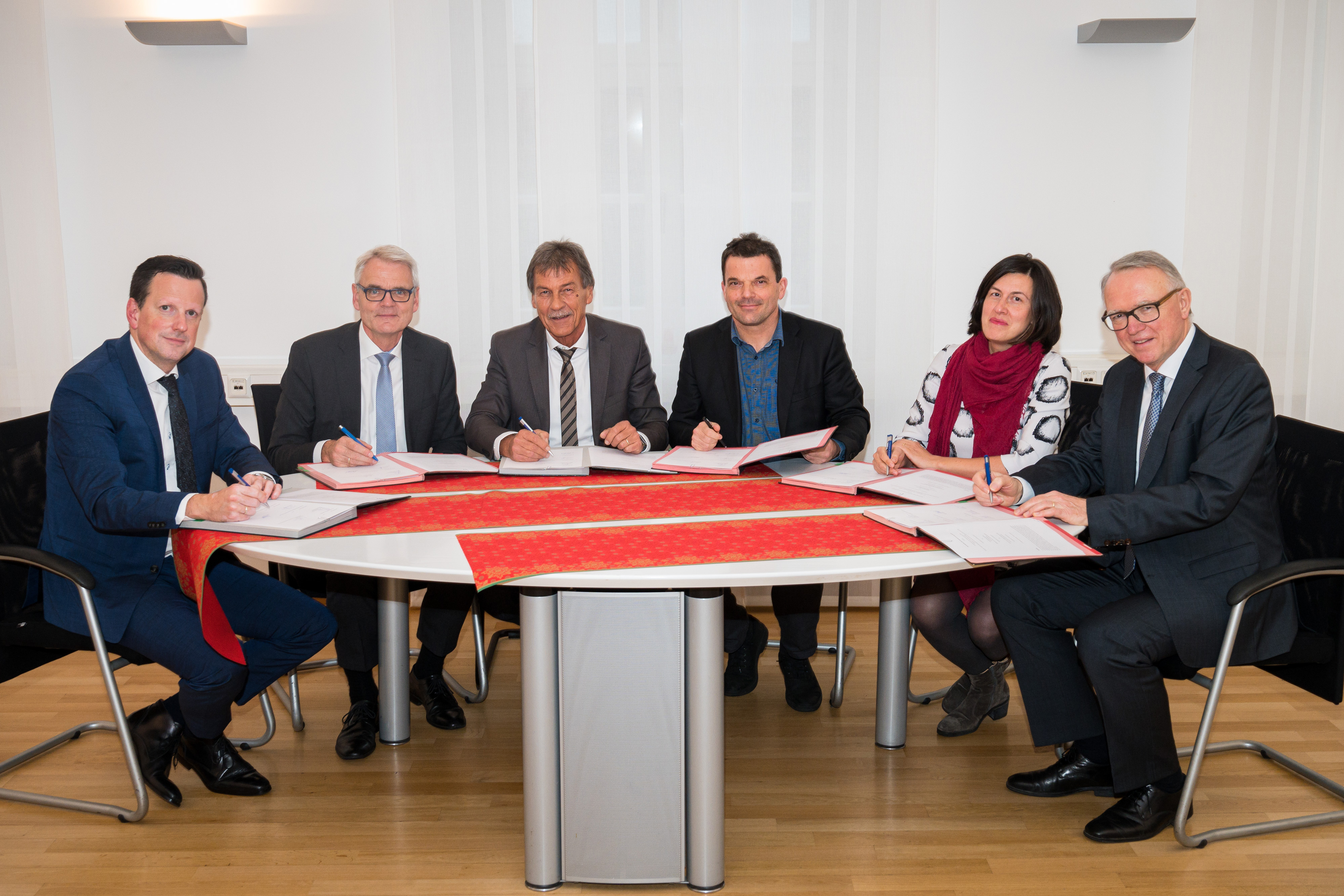 Am heutigen Tag unterzeichneten der Wissenschaftliche Geschäftsführer des Helmholtz-Zentrums für Infektionsforschung (HZI), Prof. Dirk Heinz, der Präsident der Universität des Saarlandes, Prof. Manfred Schmitt, der Geschäftsführender Direktor des Saarbrücker HZI-Standortes und Helmholtz-Instituts für Pharmazeutische Forschung Saarland (HIPS), Prof. Rolf Müller, sowie die wissenschaftliche Geschäftsführerin des Leibniz-Instituts für Neue Materialien (INM), Prof. Aránzazu del Campo, den Kooperationsvertrag zum Start der Allianz Pharmazeutische Forschung Saarland.