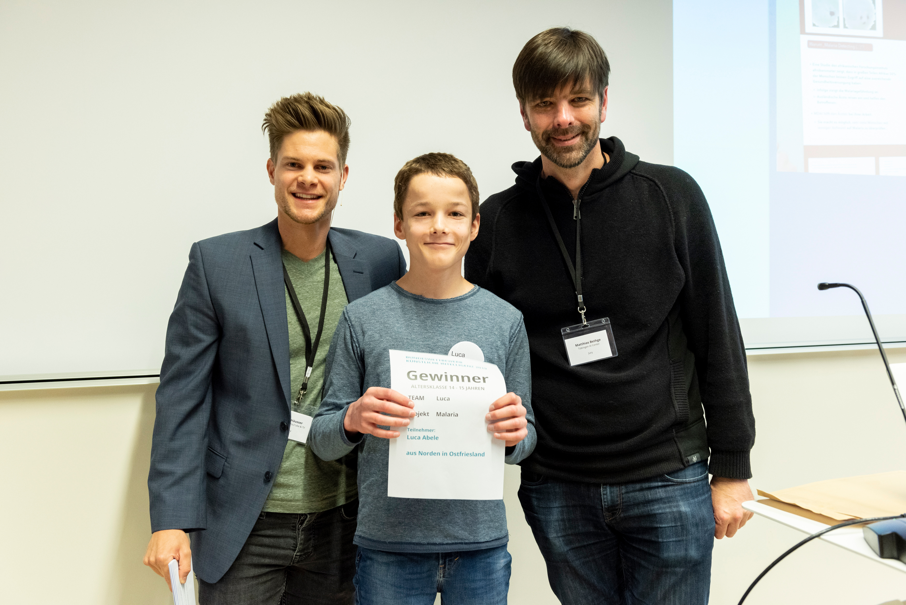 In der Altersklasse 14 bis 15 Jahre siegte Luca Abele vom Ulrichsgymnasium im ostfriesischen Norden mit einem Projekt zur Identifizierung von Malaria-Erregern im menschlichen Körper. Er hat einen Algorithmus programmiert, der infizierte Zellen von nicht-infizierten Zellen unterscheiden kann. Der Einsatz Künstlicher Intelligenz auf diesem Gebiet könnte künftig medizinische Diagnosemethoden unterstützen.