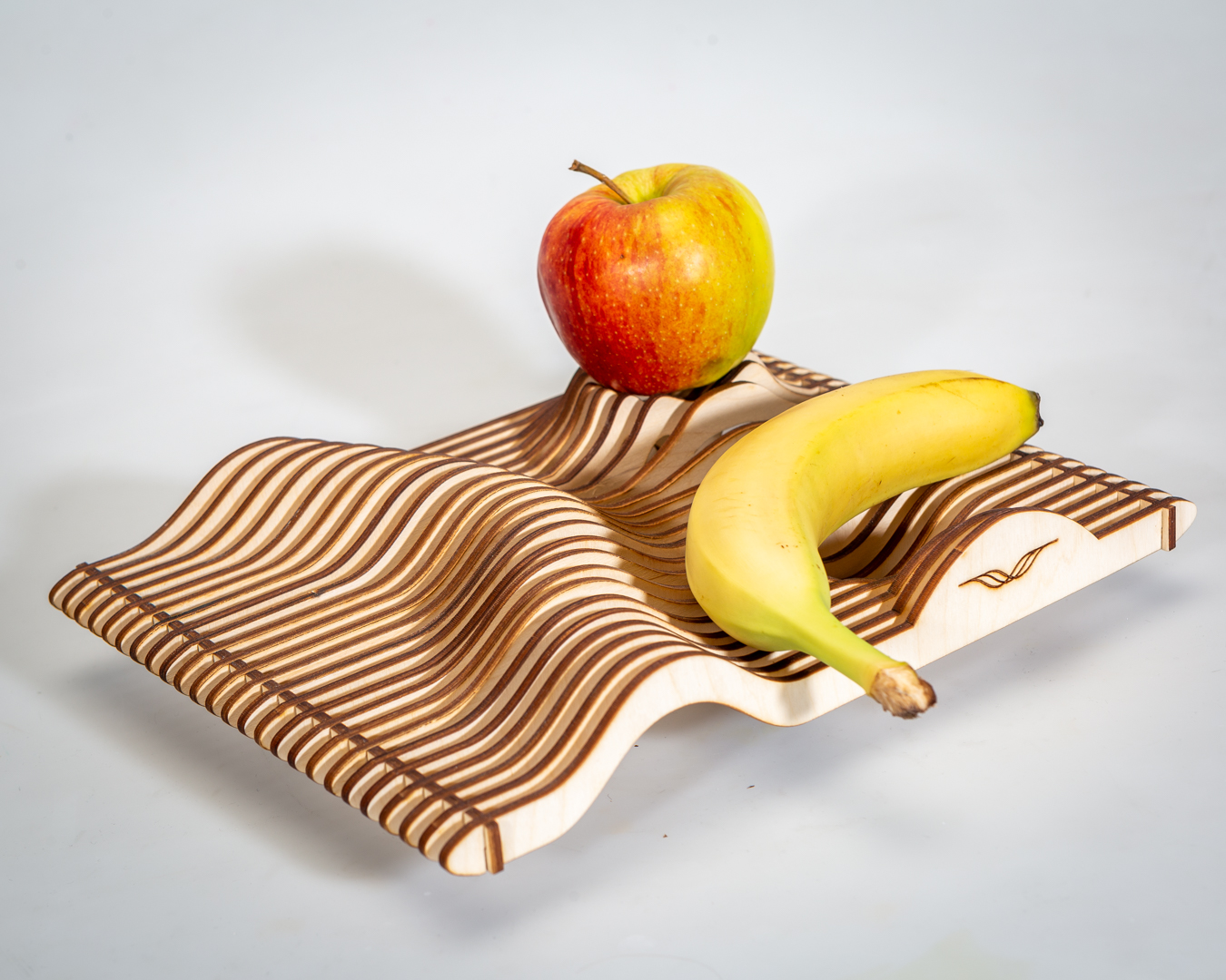 Etwa ein Dutzend Studierende der Fakultät Design stellen ihre Produkte aus: Von Ohrringen im Tannenzweig-Design über eine mit Laserschnitt erstellte Krippe bis hin zu einer etwas anderen Obstschale, die ihren eigentlichen Gebrauchszweck nicht gleich auf den ersten Blick verrät. Die Studierenden, alle aus verschiedenen Semestern, haben die Arbeiten in ihrer Freizeit hergestellt.