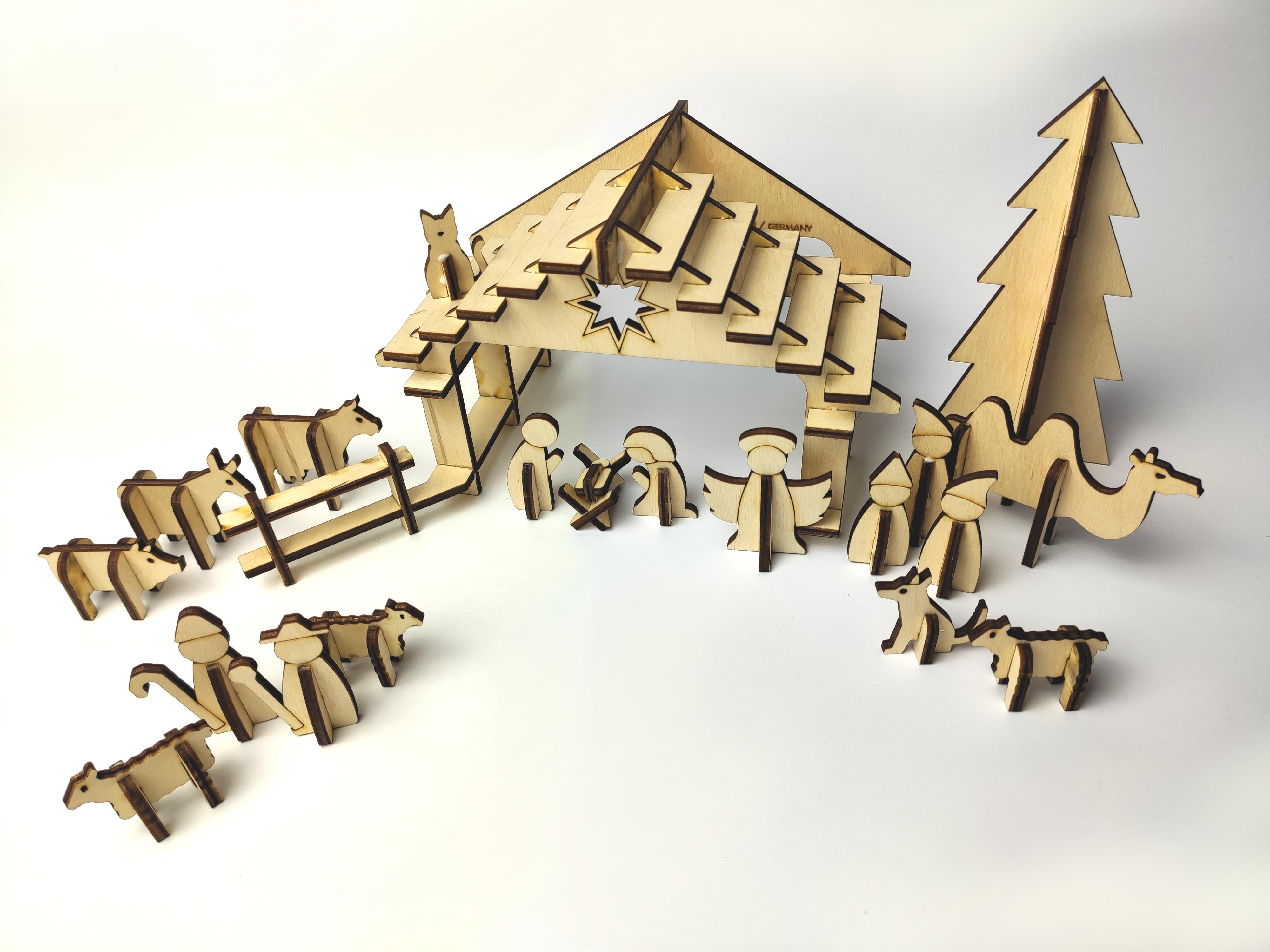 Laserschnitt-Krippe und Tannenzweig-Ohrringe