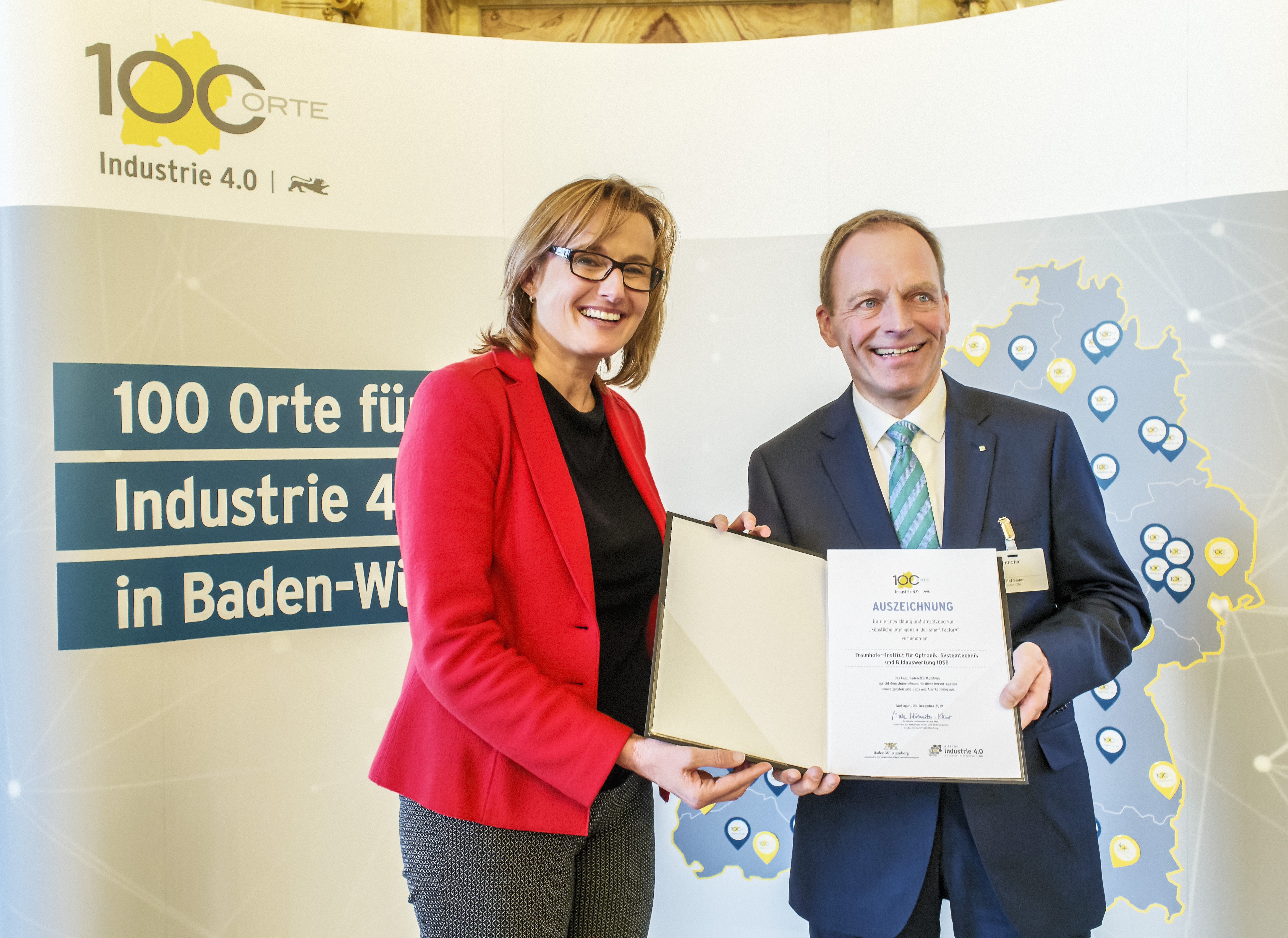 »100 Orte für Industrie 4.0«: Fraunhofer IOSB für seine KI-Kompetenz ausgezeichnet