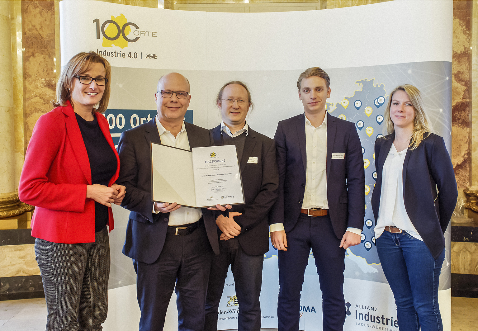 Am 3. Dezember 2019 zeichnete Wirtschaftsstaatssekretärin Katrin Schütz im Stuttgarter Schloss 15 baden-württembergische Leuchtturmprojekte für die Produktion der Zukunft als aktuelle Preisträger des Wettbewerbs „100 Orte für Industrie 4.0 in Baden-Württemberg“ aus. Einer von diesen ist die „Automated-Item-Picking-Lösung“ der Hochschule Karlsruhe – Technik und Wirtschaft, für die Projektleiter Prof. Dr. Christian Wurll, Professor für Automatisierung und Robotik an der Fakultät für Wirtschaftswissenschaften und Leiter des dortigen Robogistics-Labors, den Preis entgegennehmen konnte.