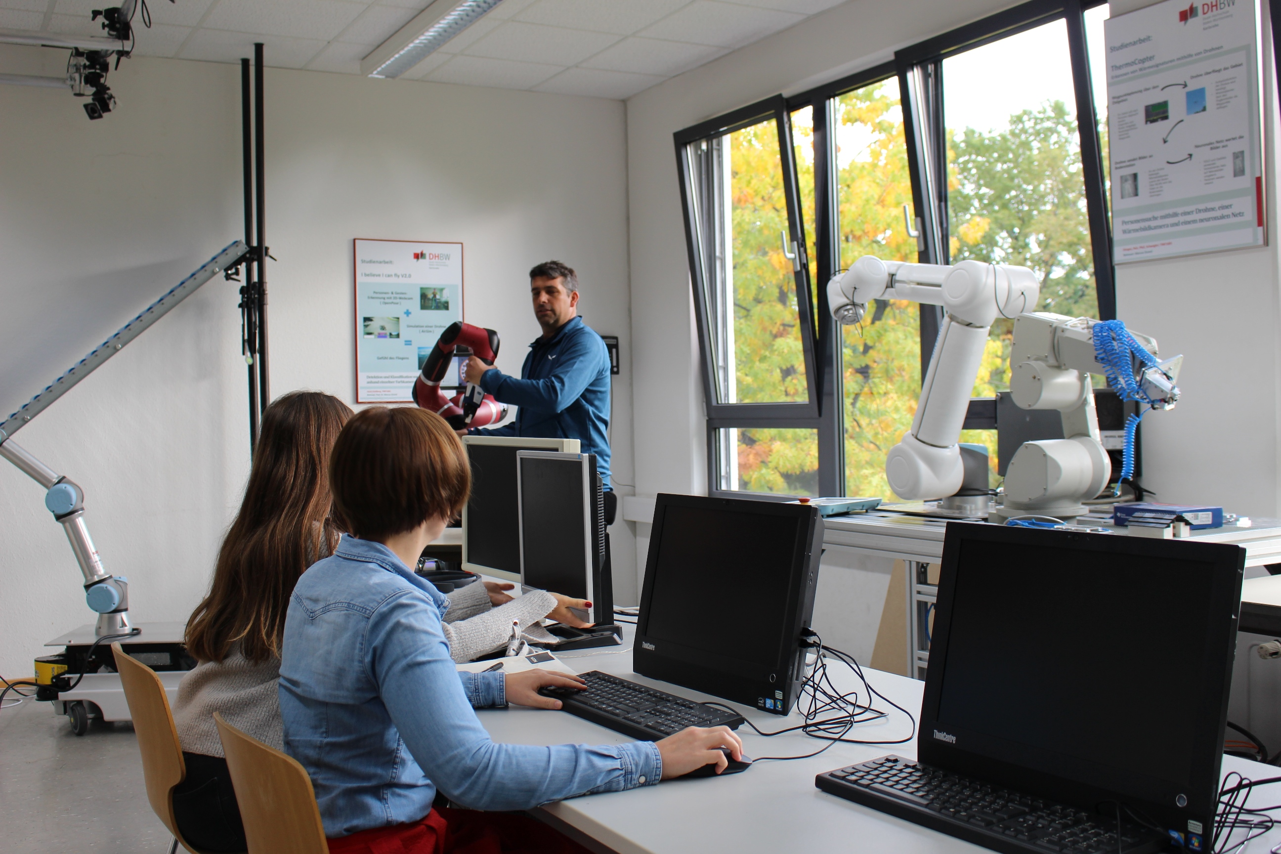 Die DHBW Karlsruhe nimmt diesen Trend auf und investierte hierzu in den letzten Monaten in einen Roboterpark, um die Ausbildung der Studierenden auf den aktuellsten Stand der Technik auszurichten. Hierdurch erlernen sie die technischen Möglichkeiten dieser neuartigen Robotersysteme kennen und können dieses Wissen damit auch den Dualen Partnern zur Verfügung stellen.