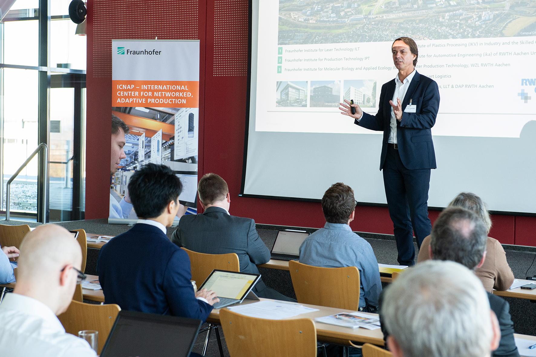 »Die vernetzte, adaptive Produktion bietet eine Antwort auf die Frage, wie wir die technische Exzellenz Europas weltweit für uns nutzen können. In der ICNAP-Community finden Wissenschaftler und Unternehmen eine Plattform, um branchenübergreifend gemeinsam an Zukunftsthemen und konkreten Fragen der Produktionstechnik zu arbeiten«, erklärte Professor Thomas Bergs, Lehrstuhlinhaber für Technologie der Fertigungsverfahren am Werkzeugmaschinenlabor WZL der RWTH Aachen und Mitglied im Direktorium des Fraunhofer-Instituts für Produktionstechnologie IPT, in seiner Eröffnungsrede.
