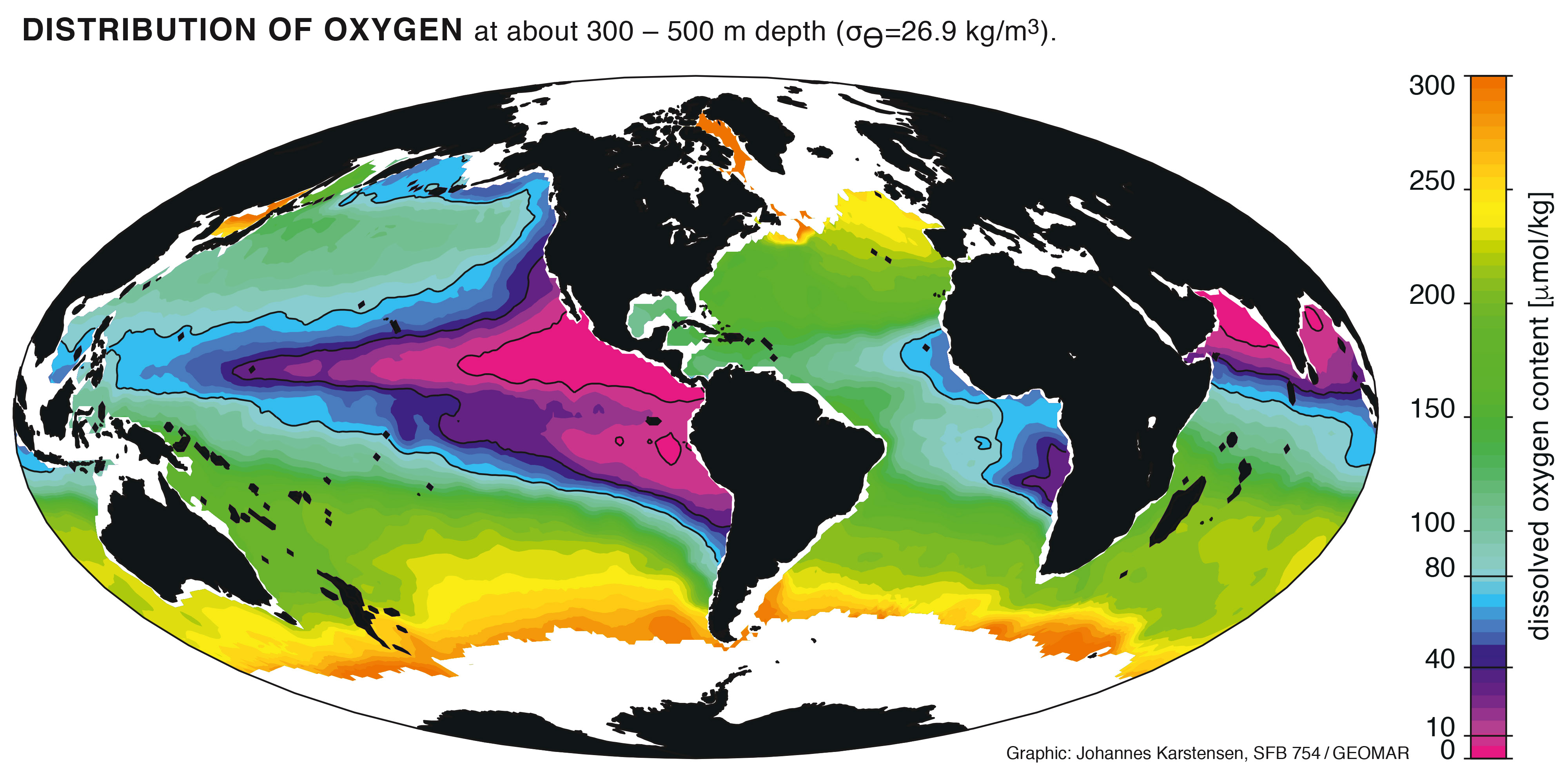 Neben der Erderwärmung zeigt der IUCN Bericht weitere Gründe für die Sauerstoffabnahme auf. Dazu gehören die Überdüngung von Küstengewässern und Veränderungen der Ozeanzirkulation. „Die globale Erwärmung trägt aber ihren Teil dazu bei, denn wärmeres Wasser kann weniger Sauerstoff aufnehmen, dass dann von der Oberfläche in die tieferen Schichten des Ozeans transportiert wird“, erklärt Dr. Lothar Stramma, Ozeanograph am GEOMAR Helmholtz-Zentrum für Ozeanforschung Kiel. Forschende vom GEOMAR haben mit ihren Ergebnissen zu diesem Bericht beigetragen. Ihre Erkenntnisse haben sie insbesondere im Rahmen des von der Deutschen Forschungsgemeinschaft geförderten Sonderforschungsbereichs (SFB) 754 „Klima-Biogeochemische Wechselwirkungen im tropischen Ozean“ gewonnen. So konnte der Kieler Ozeanograph Dr. Sunke Schmidtko in einer seiner Arbeiten nachweisen, dass der globale Sauerstoffgehalt in den vergangenen 50 Jahren um mehr als zwei Prozent zurückgegangen ist.