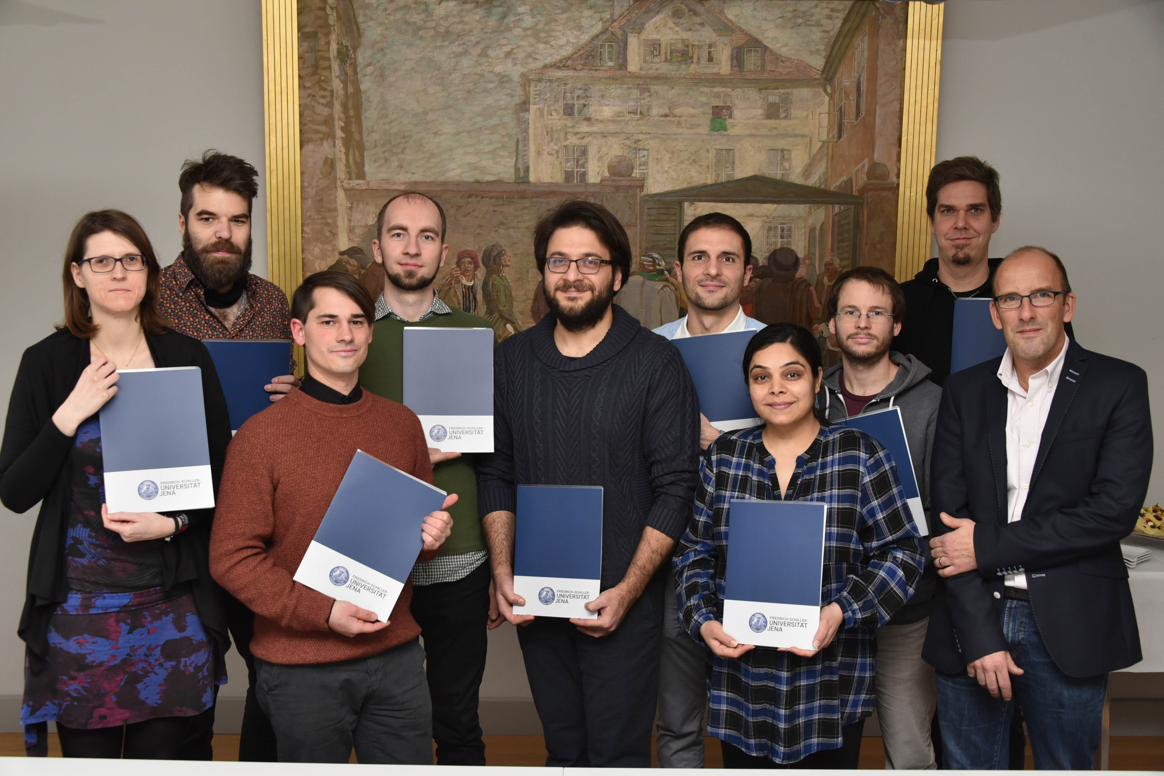 Eigene Drittmittel einzuwerben und damit ein eigenes Forschungsprofil zu etablieren, ist für Nachwuchswissenschaftler und -wissenschaftlerinnen ein sehr wichtiger Schritt in ihrer Karriereentwicklung. Um diese Drittmittel beantragen zu können, müssen oftmals erste eigene Ergebnisse vorgelegt werden. Die Friedrich-Schiller-Universität Jena stellt ihrem exzellenten Forschungsnachwuchs mit dem Programm „Impulse“ eine Anschubfinanzierung für solche Vorarbeiten zur Verfügung. Als Ergebnis eines wettbewerblichen Verfahrens konnten heute (13.12.) an 13 Projekte durch Prof. Dr. Georg Pohnert, Vizepräsident für Forschung der Universität Jena, die Impulse 2019 verliehen werden. Insgesamt konnte er Zuwendungsbescheide in Höhe von mehr als 140.000 Euro überreichen.