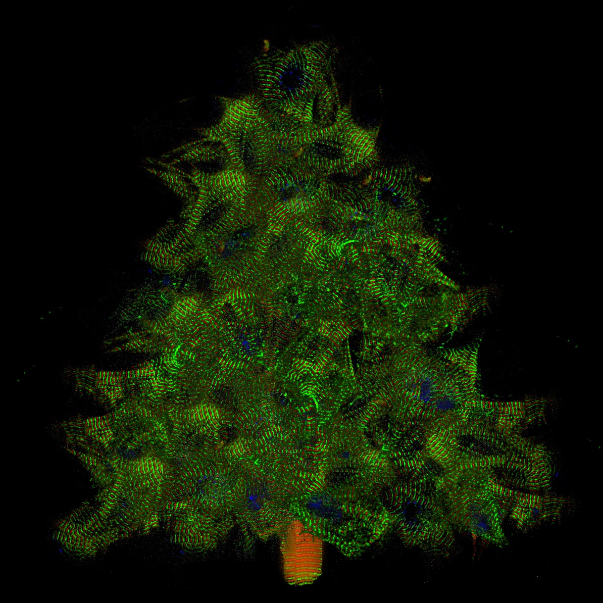 Während festliche Beleuchtung allerorten die Weihnachtszeit erhellt, freuen sich Forscher*innen am Max-Delbrück-Centrum für Molekulare Medizin (MDC) aus einem ganz anderen Grund über rote und grüne Lichter: Mithilfe fluoreszierender Markierungen hat ein Team den gesamten Lebenszyklus von Titin verfolgt. Das ist das größte Protein im Körper, das für seine Schlüsselrolle in Muskelgewebe bekannt ist. Titin von seiner Entstehung bis zum Zerfall zu beobachten, habe neuartige Einsichten in die Bildung von Sarkomeren ermöglicht, den kleinsten kontraktilen Einheiten von Herz- und Skelettmuskulatur. Das berichten sie in der Fachzeitschrift Proceedings of the National Academy of Sciences.