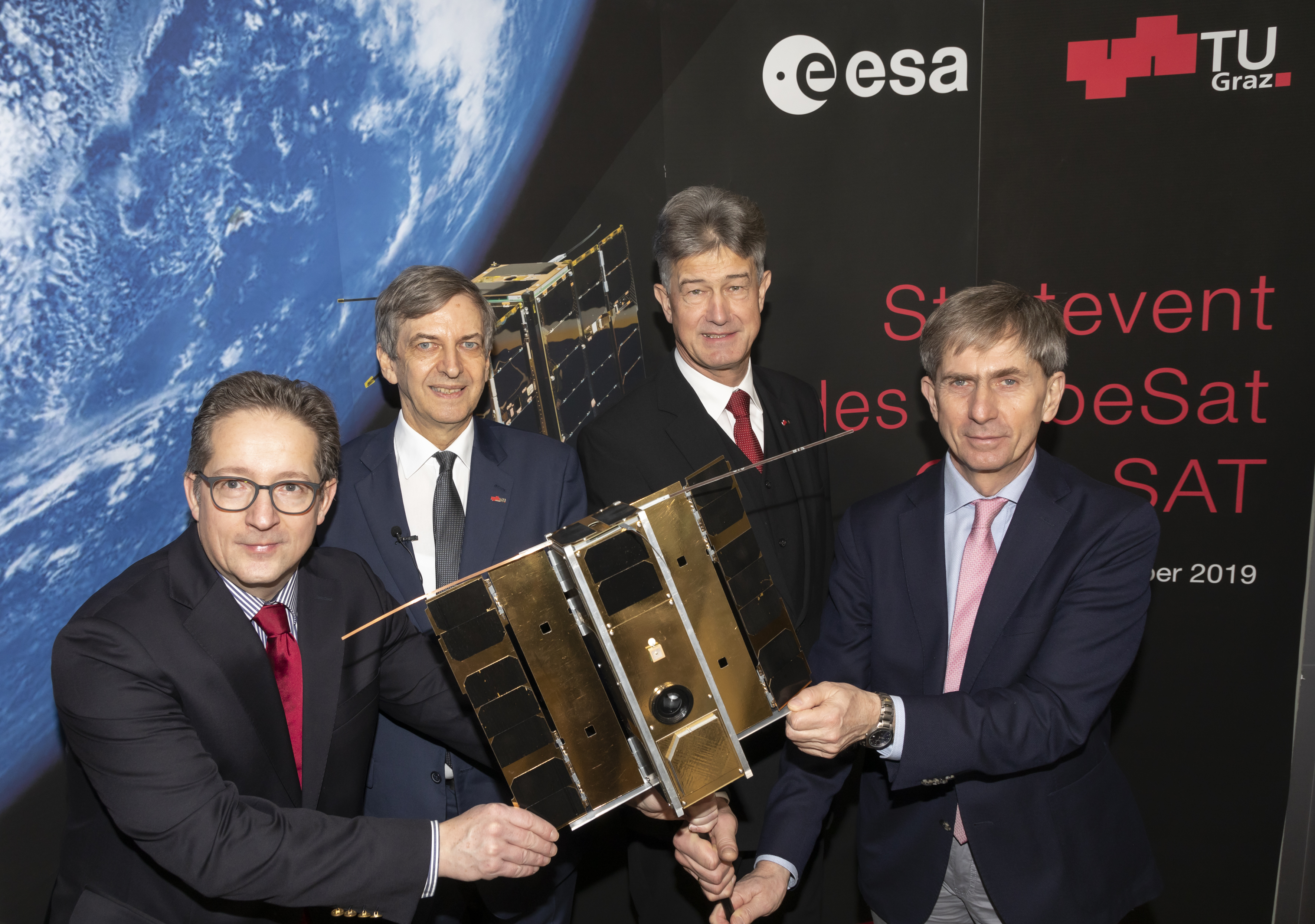 Der Rektor der TU Graz, Harald Kainz zeigt sich hocherfreut über die Erfolge seiner Universität im All: „Das Team der TU Graz rund um ‚Satellitenvater‘ Otto Koudelka hat mit TUGSAT-1 den ersten österreichischen Satelliten ins All geschickt und damit den Grundstein für weitere Missionen wie die heute gestartete ESA- Nanosatellitenmission OPS-SAT gelegt.“ Zum Erfolg der Weltraum-Uni TU Graz trägt auch die enge Vernetzung mit den großen nationalen Playern sowie die lokale Infrastruktur bei. Rektor Harald Kainz: „Wir arbeiten sehr eng mit dem Institut für Weltraumforschung der Österreichischen Akademie der Wissenschaften zusammen, haben mit dem Observatorium Lustbühel eine international anerkannte Messstation für Weltraumprojekte aller Art, betreiben am Campus der TU Graz die Bodenstation für die ebenfalls internationale Satellitenmission BRITE und haben österreichische Pioniere der Weltraumforschung wie Willibald Riedler, Hans Sünkel und Wolfgang Baumjohann im Lande. Österreich, insbesondere Graz, ist heute zweifelsfrei ein international sichtbares Zentrum der Weltraumforschung“.
