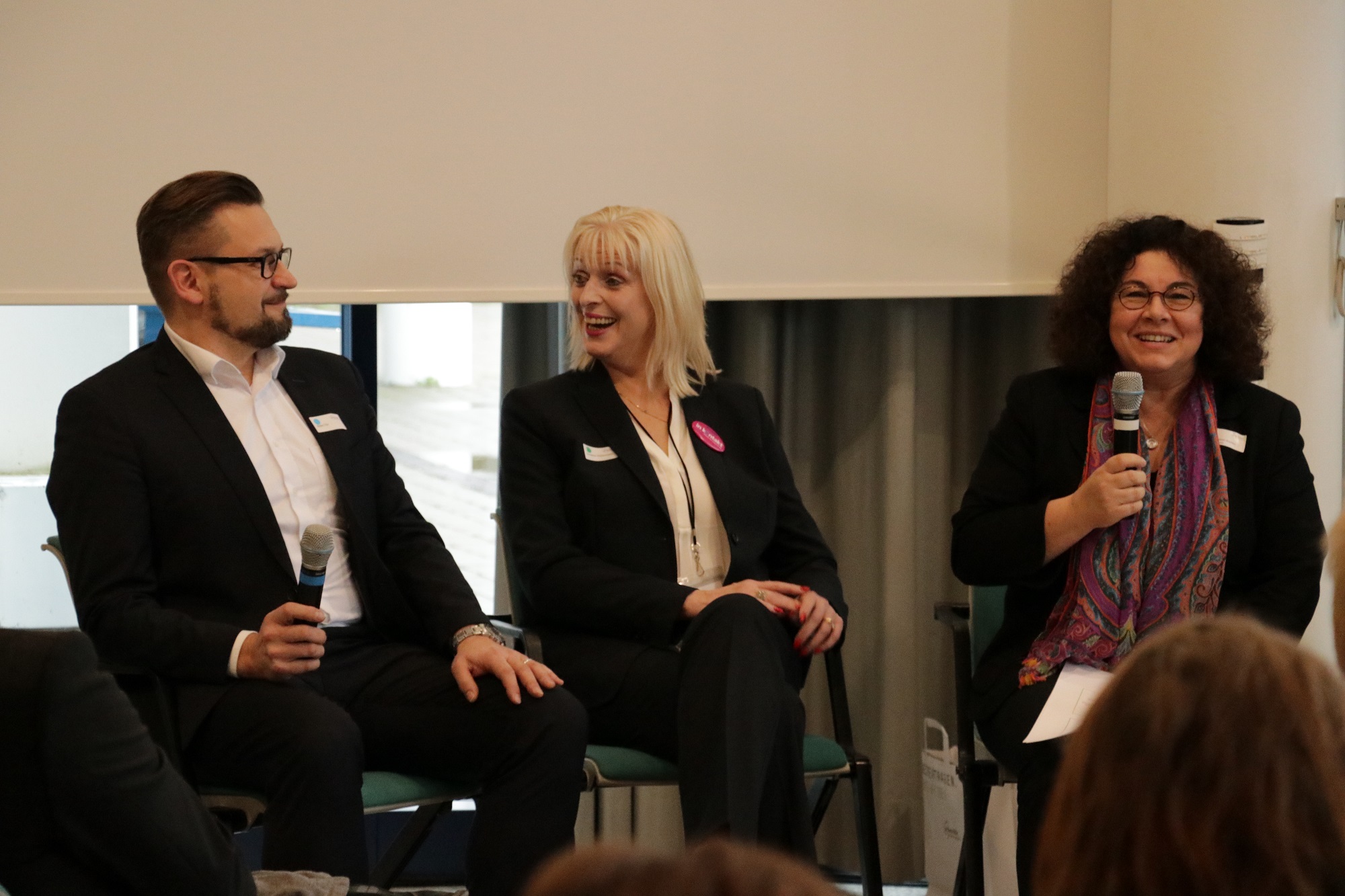 „Angehörige leisten einen wichtigen Beitrag zur Versorgung von Pflegebedürftigen in unserer Gesellschaft, sie sollen dabei bestmöglich unterstützt und entlastet werden“, betonte Projektleiterin Prof. Dr. Sabine Bohnet-Joschko, Inhaberin des Lehrstuhls für Management und Innovation der Fakultät für Wirtschaftswissenschaft schon bei der Begrüßung. Durch das vielseitige Programm mit Impulsvorträgen, Diskussion, Interaktion und Podiumsdiskussion hatten alle Teilnehmenden die Möglichkeit, sich auch persönlich einzubringen. Björn Uhr, Pflegeberater der AOK und Ratsmitglied in Altena ist erfreut: „Keine Aneinanderreihung von Vorträgen, sondern viel Gelegenheit für den Austausch zwischen Forschung und Praxis, das hat mir gut gefallen.“ Und Gabriele König, Pflegeberaterin der Stadt Wuppertal, ergänzte: „Die vom Forschungsteam vorgestellten Typen von pflegenden Angehörigen sind sehr treffend dargestellt, ich kenne sie tatsächlich alle aus meiner Beratung.“ Auch die seitens der Hochschule für Gesundheit in Bochum von Martin Schieron präsentierten Ergebnisse zur Frage „Was pflegende Angehörige auf den Homepages der Städte, Kreise und Kommunen im Internet finden“ stieß auf reges Interesse. Prof. Christel Bienstein gab einen Einblick in die Empfehlungen des wissenschaftlichen Beirats zur Vereinbarkeit von Pflege und Beruf beim Bundesfamilienministerium. Sie lobte die hervorragende Zusammenarbeit zwischen Pflege- und Wirtschaftswissenschaft und ergänzte: „Die Tagung hat die Kompetenzen aller Teilnehmer intensiv eingebunden, das wird den Transfer der Forschungsergebnisse in die Praxis sehr unterstützen.“