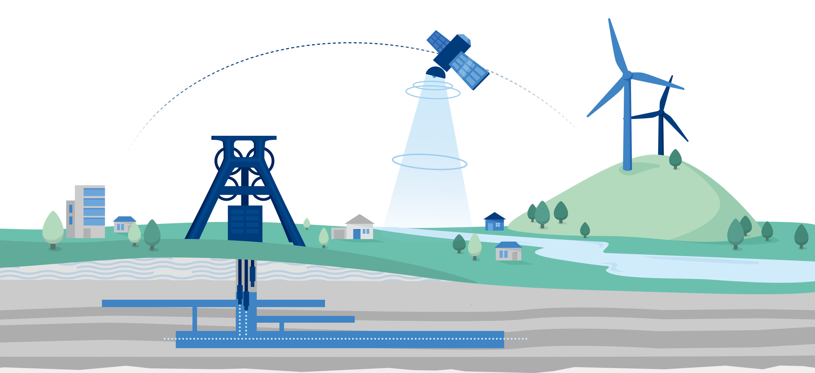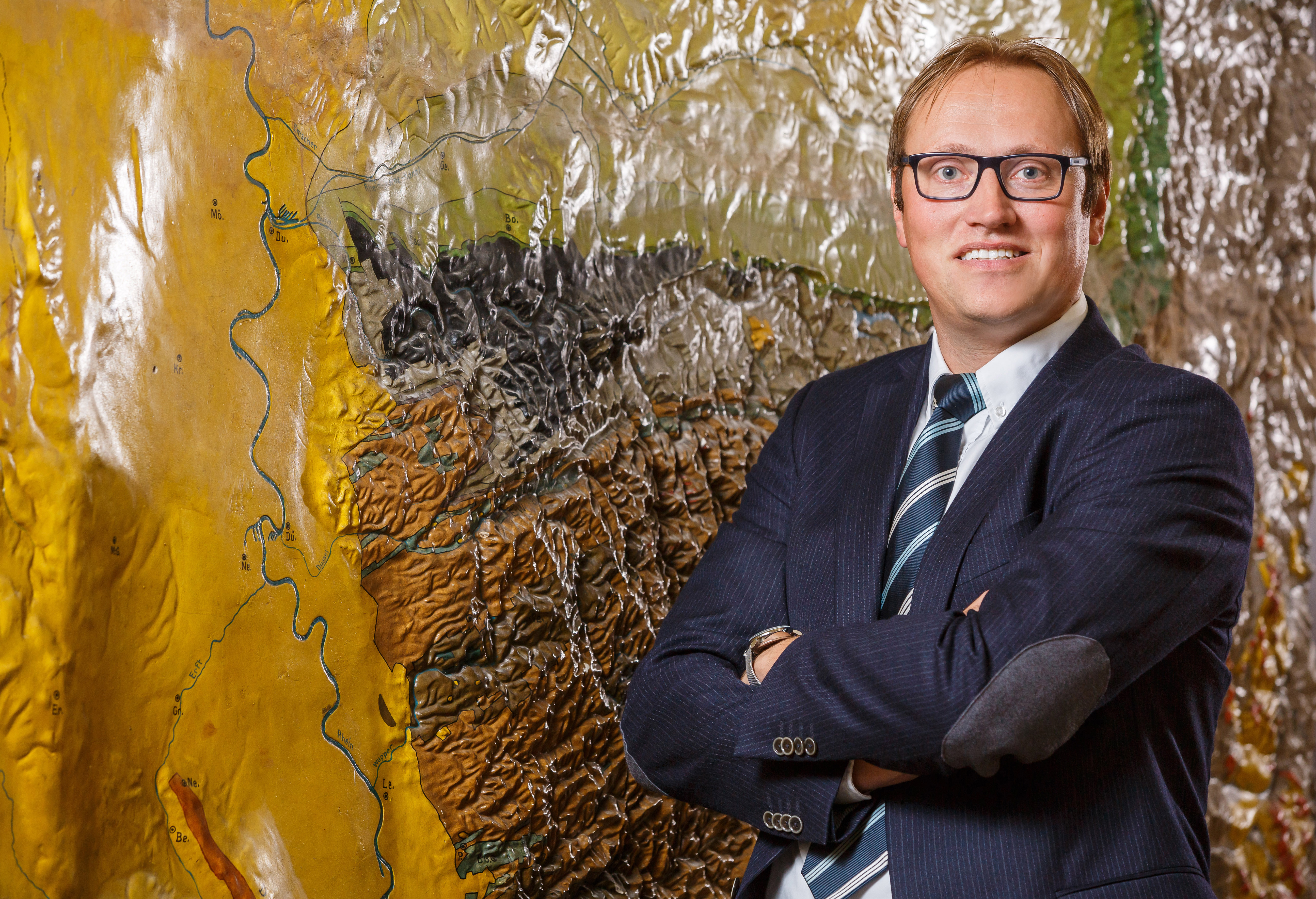 An den individuellen Lösungen wird in Bochum mit hochmodernen und teils ungewöhnlichen Methoden gearbeitet. Oder hätten Sie gedacht, dass man Bergbaufolgen auch vom Weltall aus beobachten kann? „Wir vergleichen engmaschig Satellitenbilder und können daraus etwa millimetergenau berechnen, ob sich der Boden absenkt oder es Veränderungen in der Vegetation gibt“, erklärt Prof. Dr. Tobias Rudolph, der für den Forschungsschwerpunkt „Geomonitoring“ zuständig ist. Der Fachmann kombiniert die Fernerkundungsdaten mit Informationen von der Erdoberfläche und dem Untergrund und erstellt dreidimensionale Abbildungen von Lagerstätten. Manchmal puzzelt er auch in 4D – dann kommt die Zeitkomponente hinzu. „Langfristig wollen wir die Erkenntnisse nutzen, um ehemalige Bergbauregionen umwelttechnisch zu überwachen und daraus ein Risikomanagement abzuleiten.“