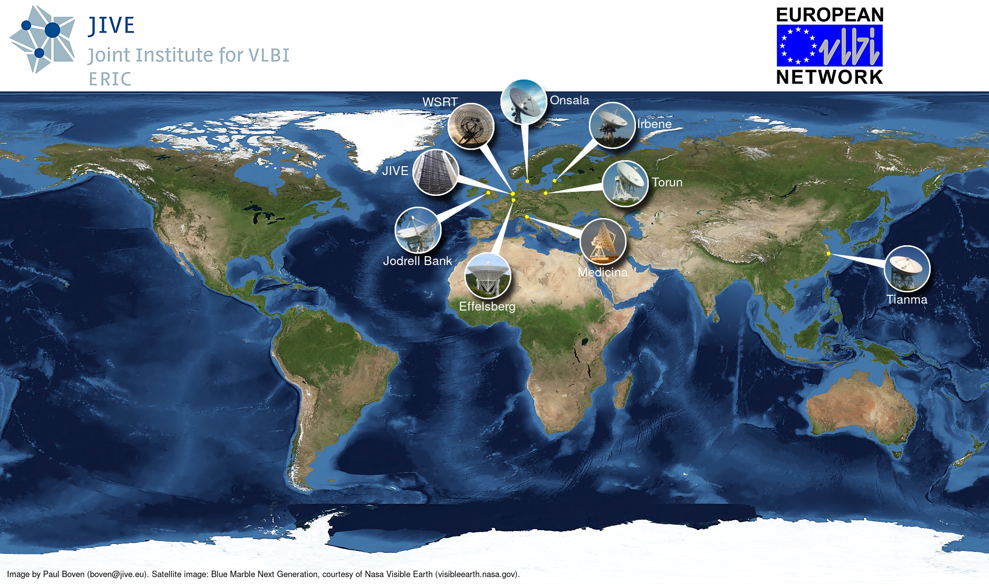 Institutes involved Observations were conducted with the European Very Long Baseline Interferometry Network (EVN). The EVN is the most sensitive Very Long Baseline Interferometry (VLBI) array in the world, which allows researchers to conduct unique, high-resolution, radio astronomical observations of cosmic radio sources. Data from the EVN is processed at the Joint Institute for VLBI ERIC (JIVE) - an international research infrastructure based in the Netherlands, which also provides support, conducts leading research and forwards technical development in the field of radio astronomy.