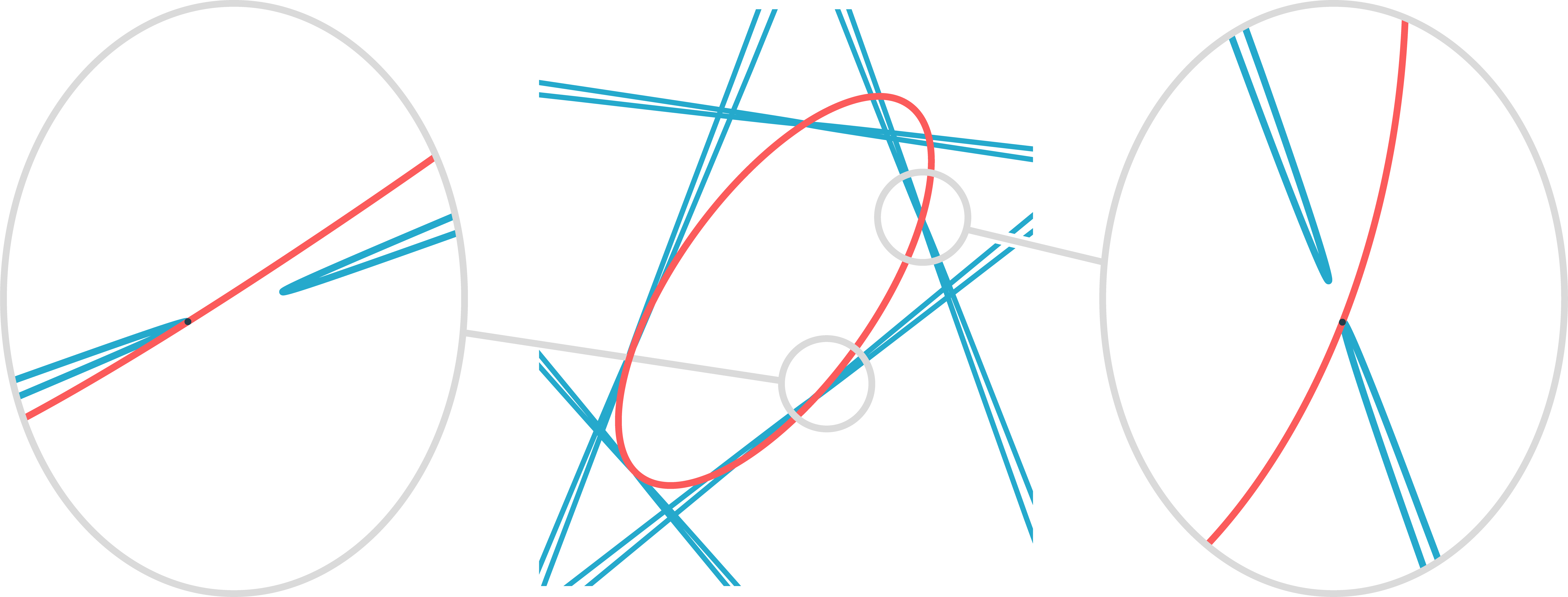 The scientists at the Max Planck Institute and the Technical University of Berlin created a web interface accompanying their publication which allows the reader to easily compute the 3264 solutions for their chosen conics (see juliahomotopycontinuation.org/diy). This innovative form of science communication is a novelty for publications in the Notices. The authors were able to use their software to compute exact equations for arrangements with real solutions to Steiner's conic problem. Thus, they strikingly demonstrated how theoretical results involve numerical procedures, as well as the possible application of numerical methods in proofs of specific theoretical results.