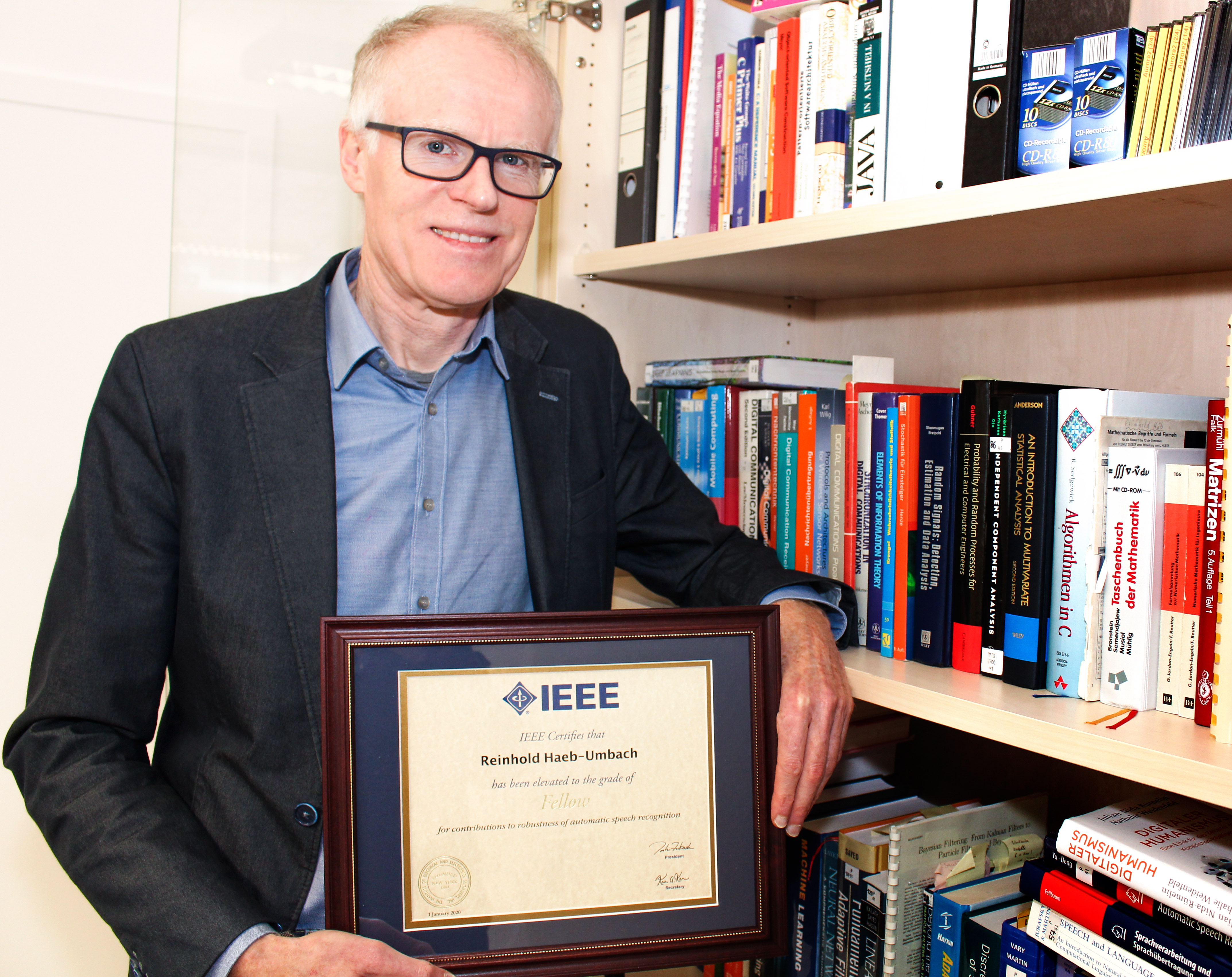 Das US-amerikanische „Institute for Electrical and Electronic Engineers (IEEE)“ hat Prof. Dr. Reinhold Häb-Umbach von der Universität Paderborn zum „IEEE Fellow“ ernannt. Häb-Umbach, Leiter des Fachgebiets Nachrichtentechnik, erhält diese Auszeichnung für seine Beiträge zur Verbesserung der Robustheit von automatischer Spracherkennung gegenüber Verzerrungen. Die Technik stellt für Sprachassistenten wie Amazon Echo und Google Home einen wichtigen Bestandteil dar, um z. B. Umgebungsgeräusche auszublenden, wenn sich ein Sprecher weiter weg von der Aufnahmequelle befindet.
