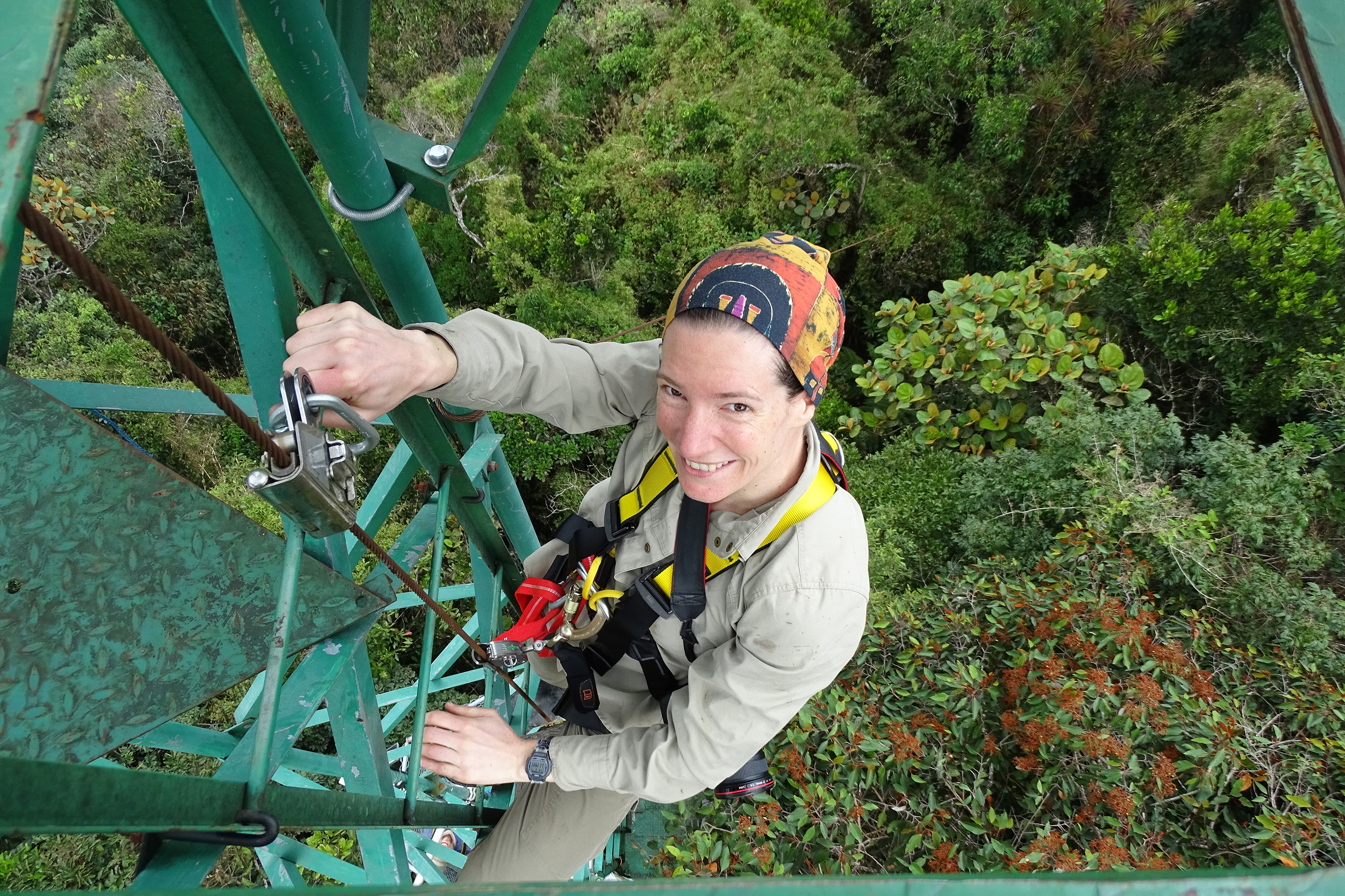Auf den gleichen Türmen wird Katrin Heer Überwachungskameras installieren. „Über die Auswertung der Bilddaten können wir mit hoher zeitlicher Auflösung abbilden, welche Baumarten wann ihre Blätter fallen lassen, blühen oder fruchten. Zusammen mit den Daten, die die Forschungsgruppe erhebt, können wir evaluieren, inwiefern Baumphänologie einen Einfluss auf den Kohlenstoffhaushalt und die Reflektionseigenschaften des Kronendachs hat“, erklärt Katrin Heer. „Durch diese Mechanismen beeinflusst die Phänologie der Bäume das Feedback der Biosphäre an die Atmosphäre.“
