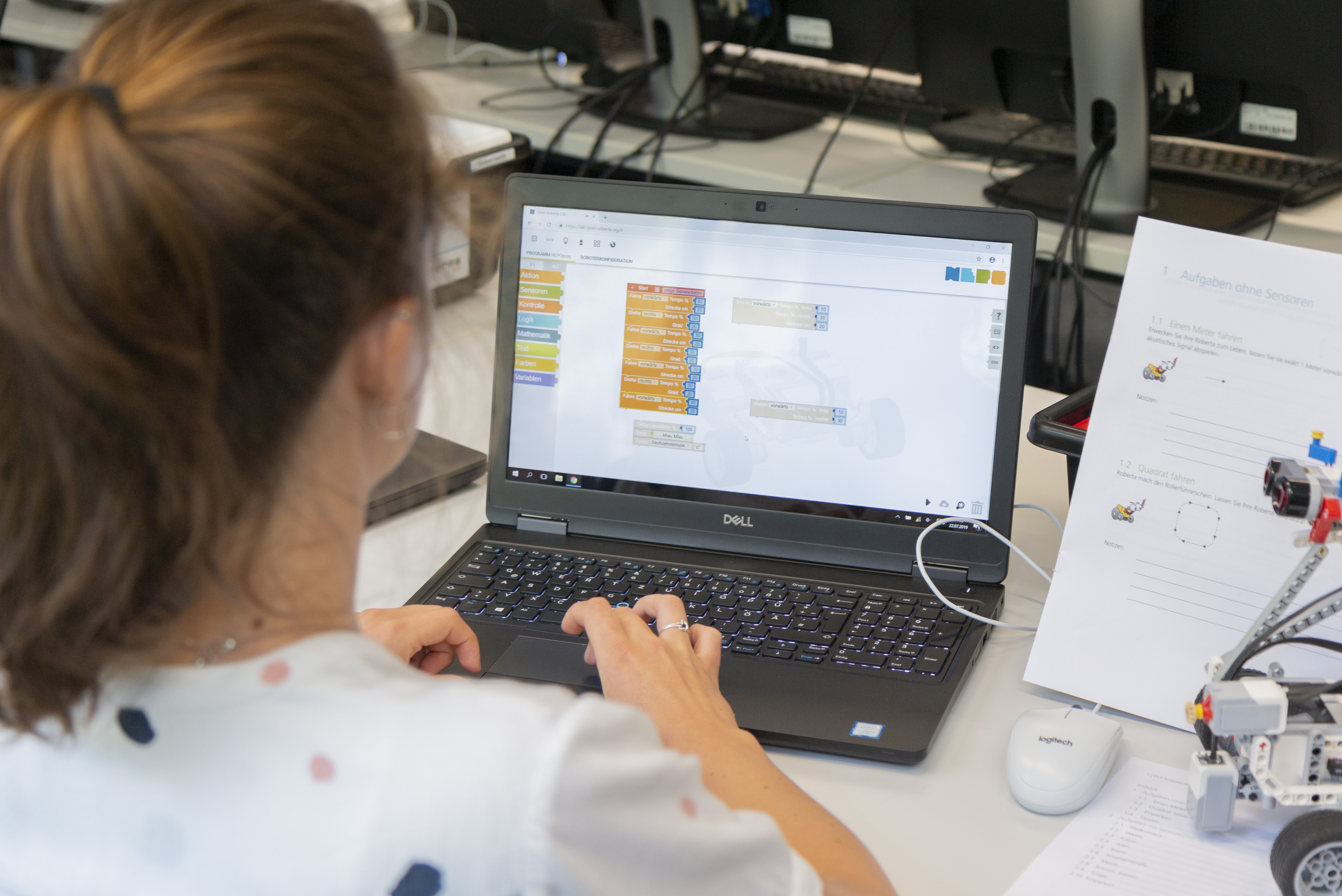 Seit 2002 unterstützt »Roberta – Lernen mit Robotern«, eine Initiative des Fraunhofer-Instituts für Intelligente Analyse- und Informationssysteme IAIS, MINT-Bildung bei Mädchen und Jungen von der Grundschule bis in die Sek II sowie im Aus- und Fortbildungsbereich. Die Roberta-Coaches von Fraunhofer IAIS haben bereits mehr als 2700 Lehrkräfte geschult, die an Schulen deutschlandweit und international Robotik- und Programmierkurse anbieten. Mit Open Roberta hat das Fraunhofer IAIS mit Unterstützung von Google.org eine Plattform entwickelt, auf der mittlerweile Hunderttausende Kinder und Jugendliche aus mehr als 120 Ländern weltweit spielerisch per »drag and drop« Programme für unterschiedliche Roboter und Mikrocontroller erstellen. Die Programmierumgebung wird auf einem Fraunhofer-Server am Standort Sankt Augustin entwickelt.