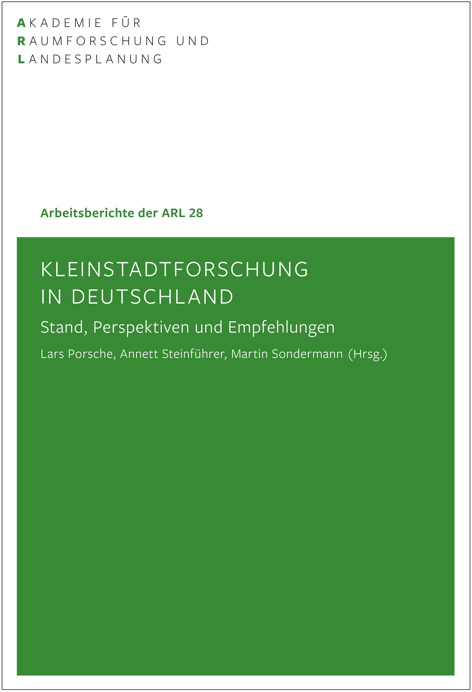 Porsche, Lars; Steinführer, Annett; Sondermann, Martin (Hrsg.) (2019): Kleinstadtforschung in Deutschland: Stand, Perspektiven und Empfehlungen. Hannover. = Arbeitsberichte der ARL 28. URN: http://nbn-resolving.de/urn:nbn:de:0156-42576