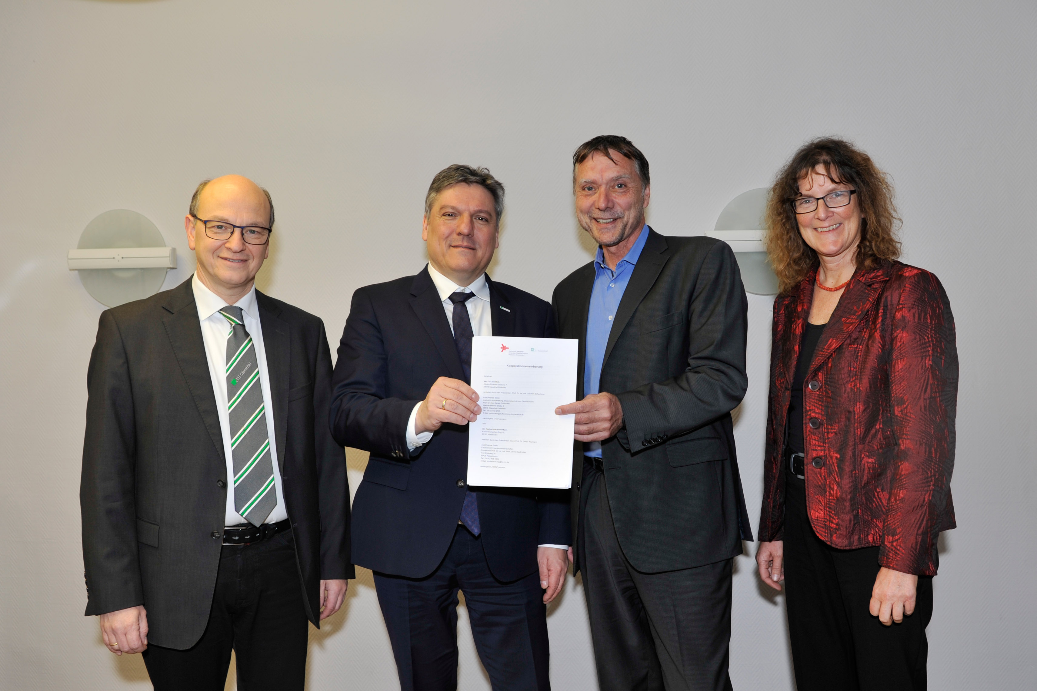 Die Technische Universität (TU) Clausthal und die Hochschule RheinMain (HSRM) kooperieren auf dem Gebiet von Studium und Lehre. Einen entsprechenden Kooperationsvertrag haben die Präsidenten der beiden Einrichtungen – Professor Joachim Schachtner (TU) und Professor Detlev Reymann (HSRM) – Ende Januar unterschrieben.