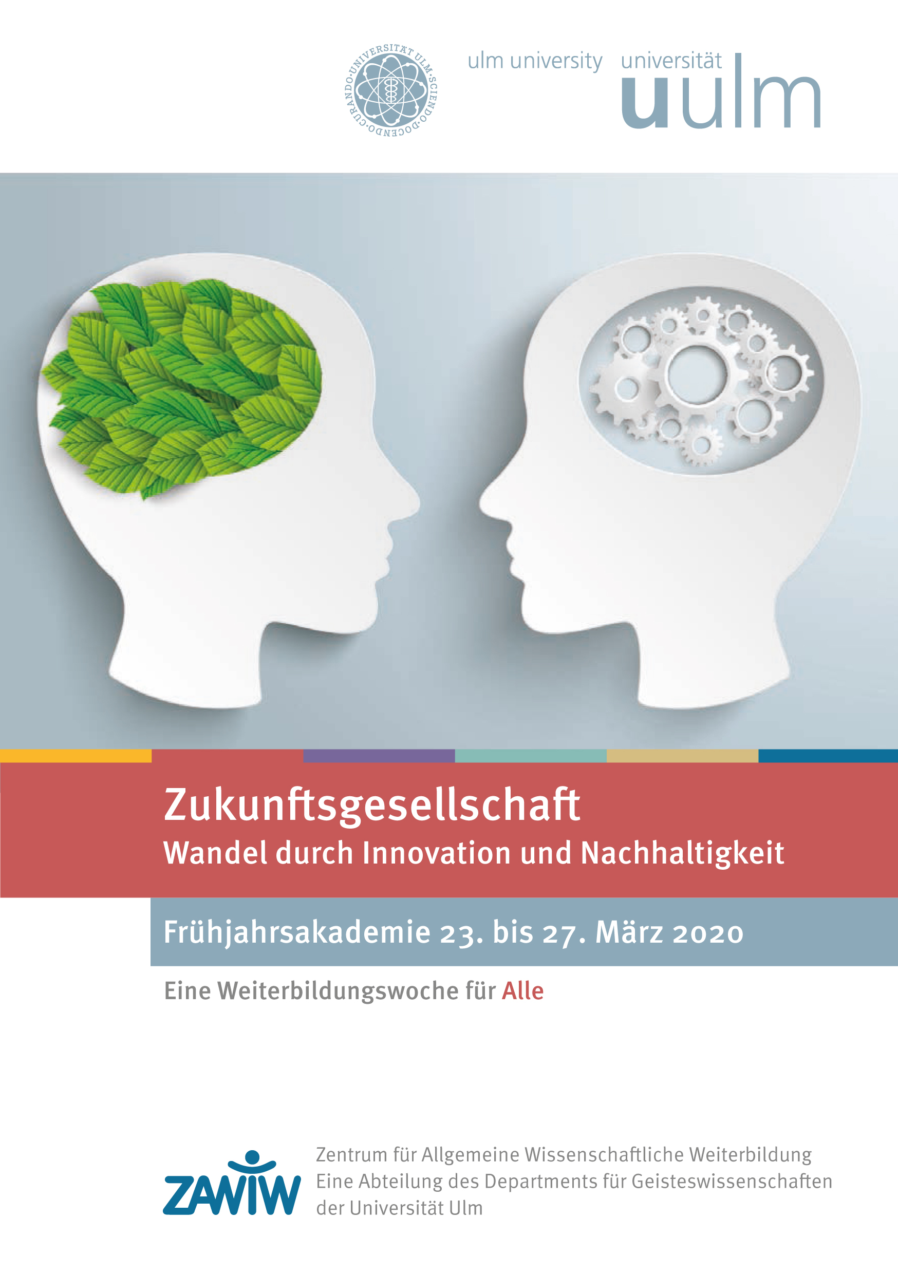 Einen Blick in die Kristallkugel, auf die Gesellschaft der Zukunft, riskiert die Frühjahrsakademie des Zentrums für Allgemeine Wissenschaftliche Weiterbildung (ZAWiW) der Universität Ulm. Vom 23. bis zum 27. März werden den Teilnehmenden der Akademiewoche wieder Vorträge, Arbeitsgruppen und Exkursionen geboten, die weit über das Hauptthema „Zukunftsgesellschaft. Wandel durch Innovation und Nachhaltigkeit“ hinausgehen. Die Anmeldung zur Frühjahrsakademie ist ab sofort bis zum 29. Februar möglich.