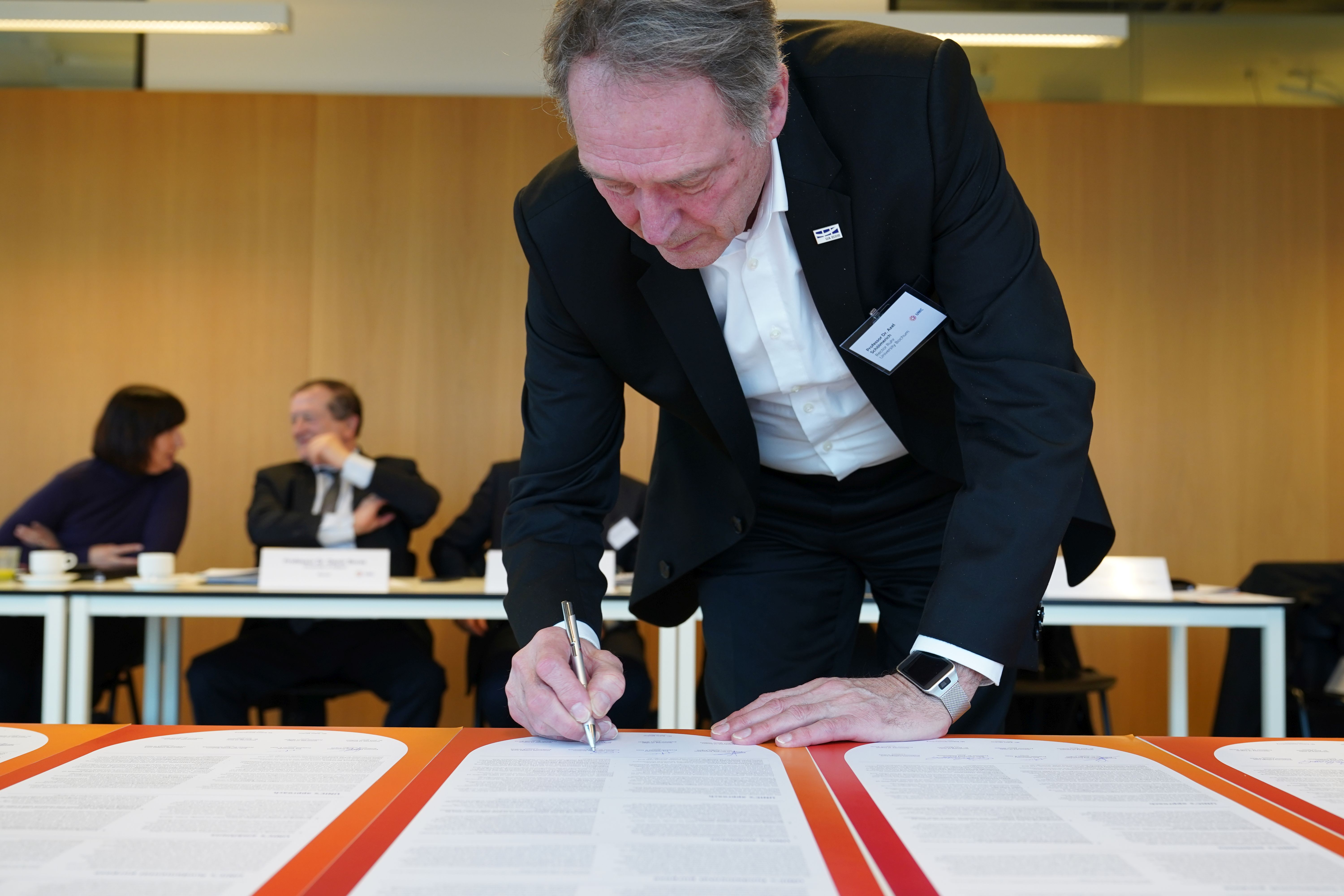 An allen acht Standorten haben Studierendenvertreter intensiv an der Konzeption des Verbundvorhabens mitgewirkt. Für die RUB hat Rektor Prof. Dr. Axel Schölmerich das Mission Statement unterzeichnet. „Unser Ziel ist es, den Studierenden das ganze Potential Europas zu erschließen, und dies mit hervorragenden Partnerinstitutionen zu tun“, so der Rektor. „Unsere Erfahrungen in der Zusammenarbeit mit den postindustriell geprägten Städten mit ihrer Superdiversity stellen uns an die Spitze einer Entwicklung, die unsere Zukunft entscheidend prägen wird. Daher ist es Aufgabe der kooperierenden Universitäten, neue Ansätze und Modelle in Forschung, Lehre und Transfer zu entwickeln, die diesen gesellschaftlichen Herausforderungen entsprechen. Gleichzeitig wird das die Überzeugungskraft der europäischen Idee und die Handlungsfähigkeit unserer Institutionen für eine konkurrenzfähige inklusive Gesellschaft stärken. So wirken unsere Studierenden an der Zukunft Europas mit.“
