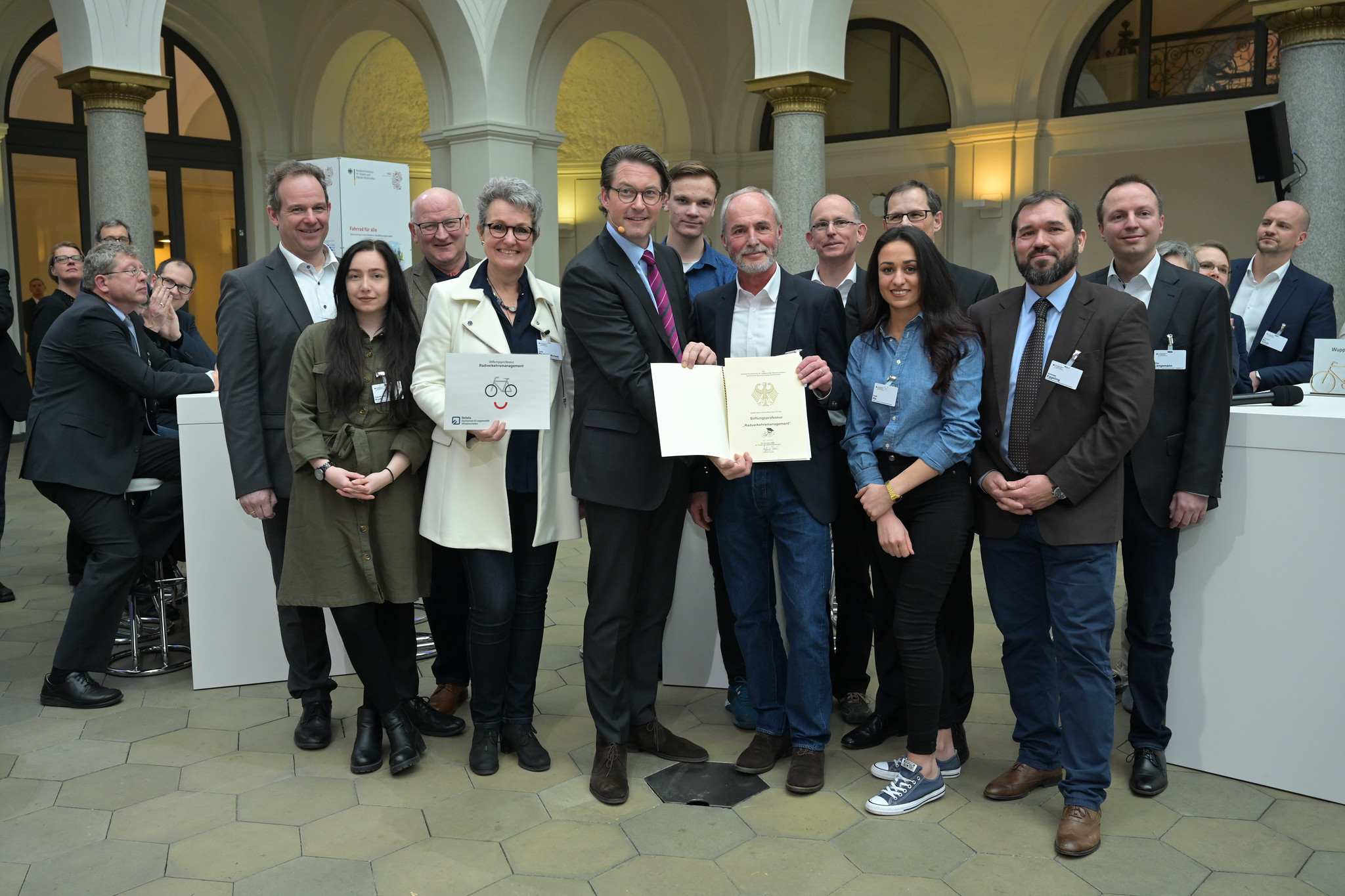 Die Förderzusage wurde von Bundesminister Andreas Scheuer am Donnerstag, den 6. Februar, in Berlin an insgesamt sieben Hochschulen offiziell erteilt, darunter die Ostfalia Hochschule. „Wir stärken Radfahrern den Rücken! Radverkehr muss als gleichberechtigtes Verkehrsmittel von Anfang an mitgedacht werden - sei es in der Gesetzgebung, in der Verkehrsplanung oder in der Innovationsforschung. Deshalb fördern wir den Radverkehr jetzt als Uni-Fach. Wir stellen den Radfahrern Verbündete an die Seite, die ihr Know-How in Zukunft gezielt vor Ort und in den Städten und Kommunen einsetzen können. So geben wir den Radfahrern eine starke Stimme und machen den Umstieg aufs Rad noch attraktiver“, so Bundesminister Scheuer.