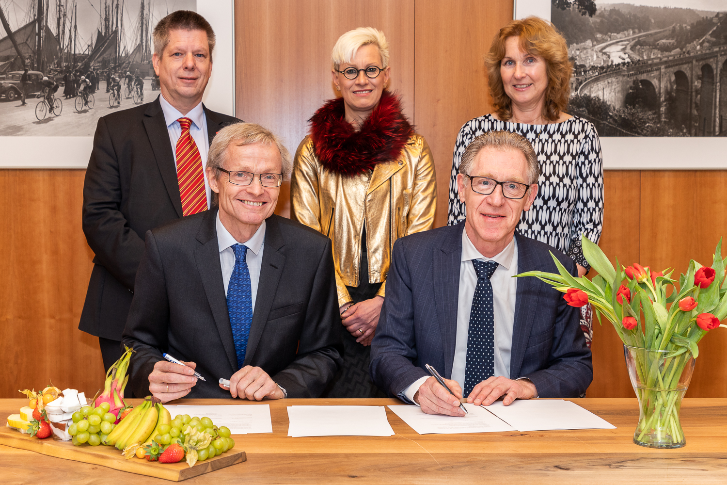 Am 7. Februar 2020 unterzeichneten Professor Henri Werij, Dekan der Fakultät für Luft- und Raumfahrttechnik der TU Delft, und Professor Rolf Radespiel, Sprecher des NFL, in Braunschweig eine gemeinsame Erklärung. Darin legen Sie gemeinsame Ziele ihrer Grundlagenforschung fest, die auf die Nachhaltigkeit in der Luftfahrt ausgerichtet sind.