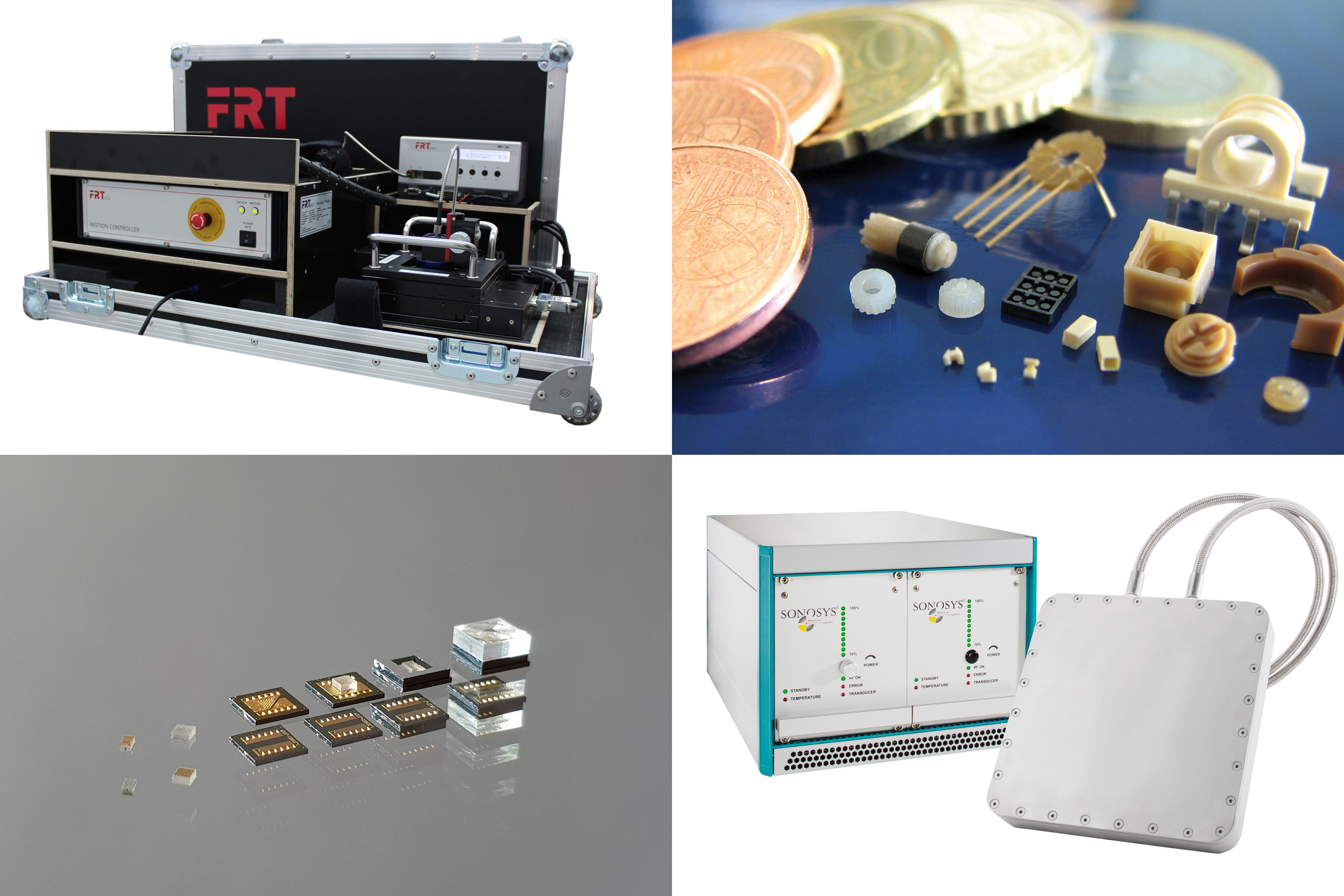 Als erstes europäisches Unternehmen bietet SONOSYS Ultraschall-Reinigungssysteme im Frequenzbereich zwischen 400 kHz und 5 MHz an. SONOSYS Megasonic-Systeme ermöglichen eine sehr effiziente Abreinigung von Partikeln bis in den Nanobereich von Wafern, Masken, MEMS und LIGA. Die Produkte werden in den verschiedensten Märkten eingesetzt, darunter z. B. die Halbleiterindustrie, Lebensmittelindustrie, optische Industrie, Solarzellenfertigung oder Sonochemie. Das Produktspektrum umfasst Transducerplatten, Tauchschwinger, Face-to-Face-Transducer, Single- und Doppel-Düsen, Vernebler und sehr kompakte Generatoren bis zu 2000 W.