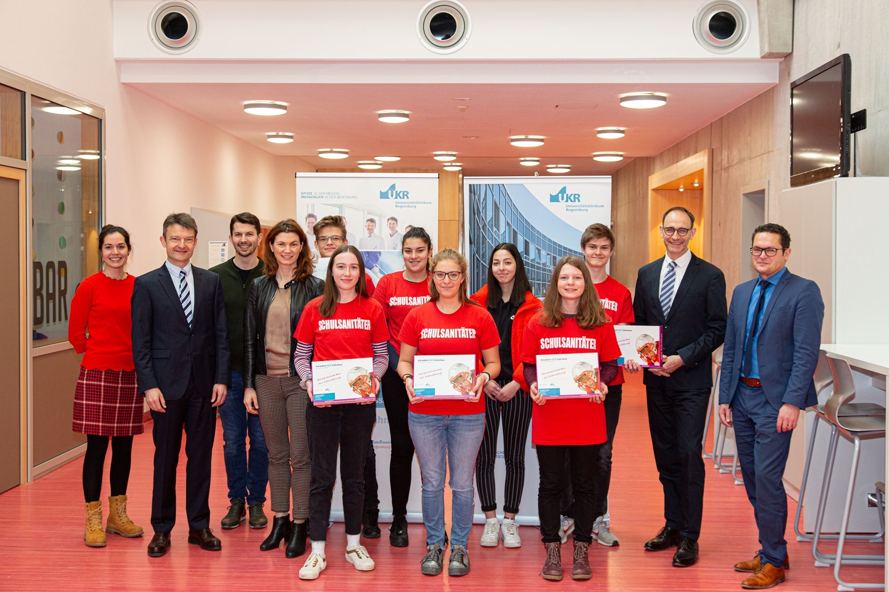 Nachdem die Schüler der Stadt Regensburg bereits mit Zahnrettungsboxen ausgestattet sind, startet am heutigen Mittwoch, 12. Februar 2020, das Projekt „Rettet die Zähne“ an den Schulen des Landkreises mit der Übergabe der Zahnrettungsboxen an das Schulsanitätsteam des Gymnasiums Neutraubling. Das Zahntraumazentrum (ZTZ) des Universitätsklinikums Regensburg (UKR) und der Landkreis Regensburg mit der Gesundheitsregionplus leisten so einen wichtigen Beitrag zur Erstversorgung im Falle eines Zahnunfalls.