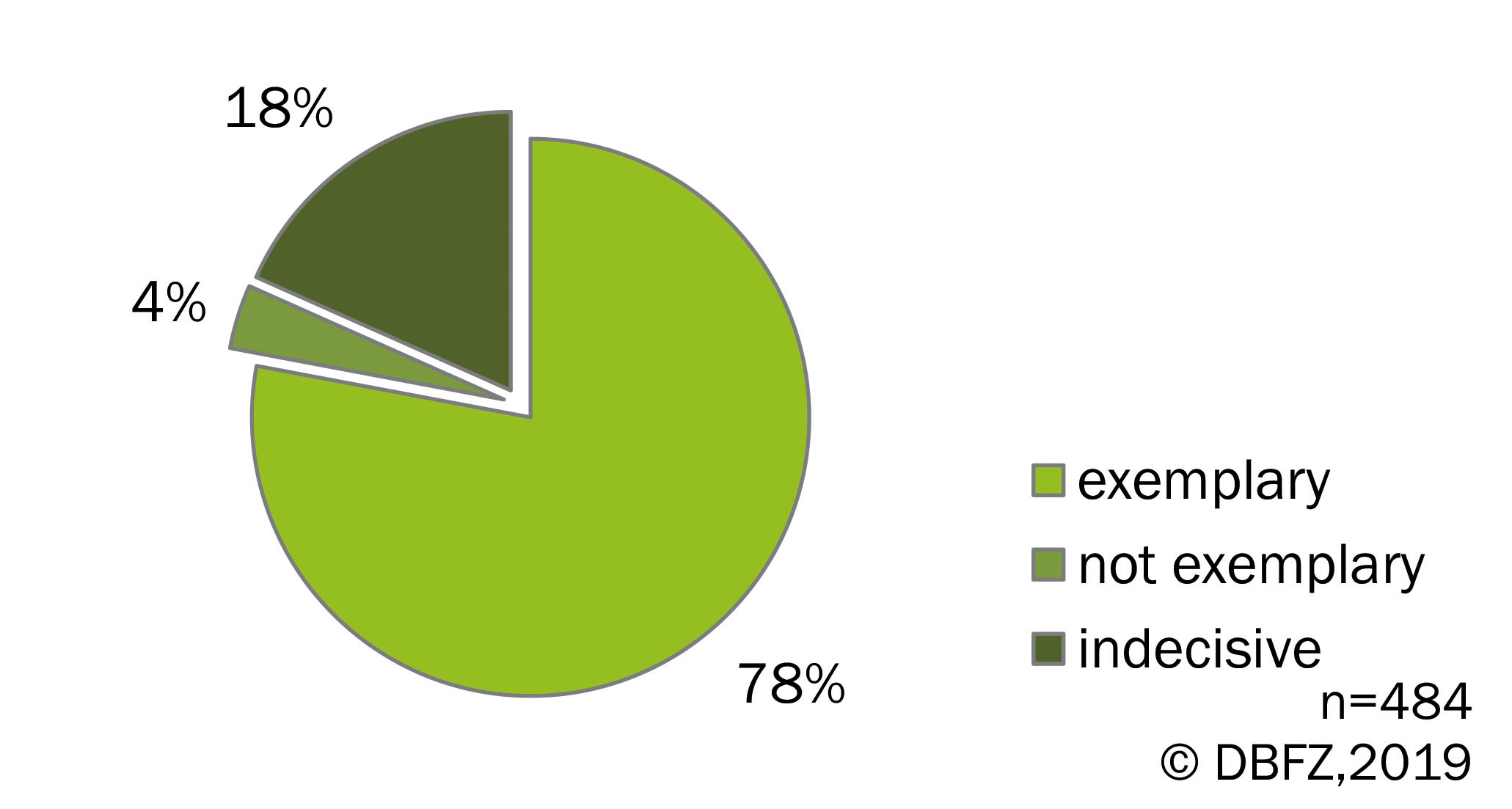Furthermore, the biogas plant operators were asked, whether they consider their own plant operation as exemplary in terms of manure management and emission reduction. Figure 2 shows that a majority of 78 % of the german plant operators consider their plant to be exemplary in this area.