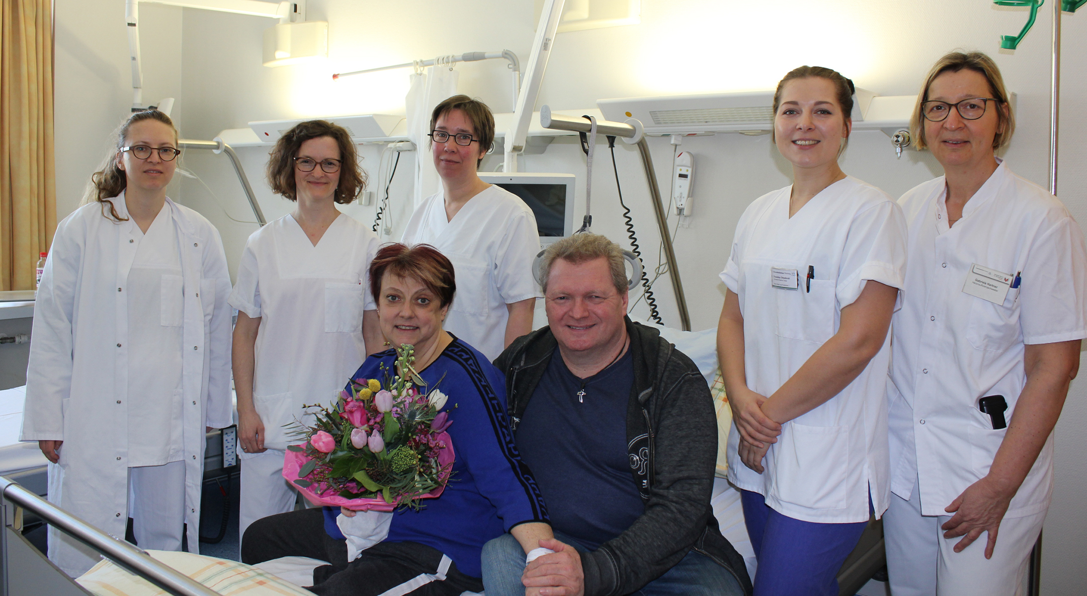 Manuela Henn ist 51 Jahre alt und kam in der vergangenen Woche ins Uniklinikum Würzburg, da ihr Körper zu viel Wasser eingelagert hatte – ein typisches Symptom einer Herzinsuffizienz. „Ich konnte mich schon so lange nicht mehr konzentrieren, war müde und wusste nicht warum“, sagt die Mitarbeiterin im Amt für Familienangelegenheiten. „Dank der ausführlichen Beratung im Rahmen der AHF Register-Studie wissen mein Mann und ich jetzt, wie wir mit der Krankheit umzugehen haben und was wir im Alltag beachten müssen.“ Sie ist die 1.000 Patientin im AHF Register, genauer gesagt die 399ste Patientin, denn 601 Studienteilnehmer sind männlich. Im Schnitt sind die Probanden auch 26 Jahre älter als Manuela Henn, nämlich 77 Jahre alt.