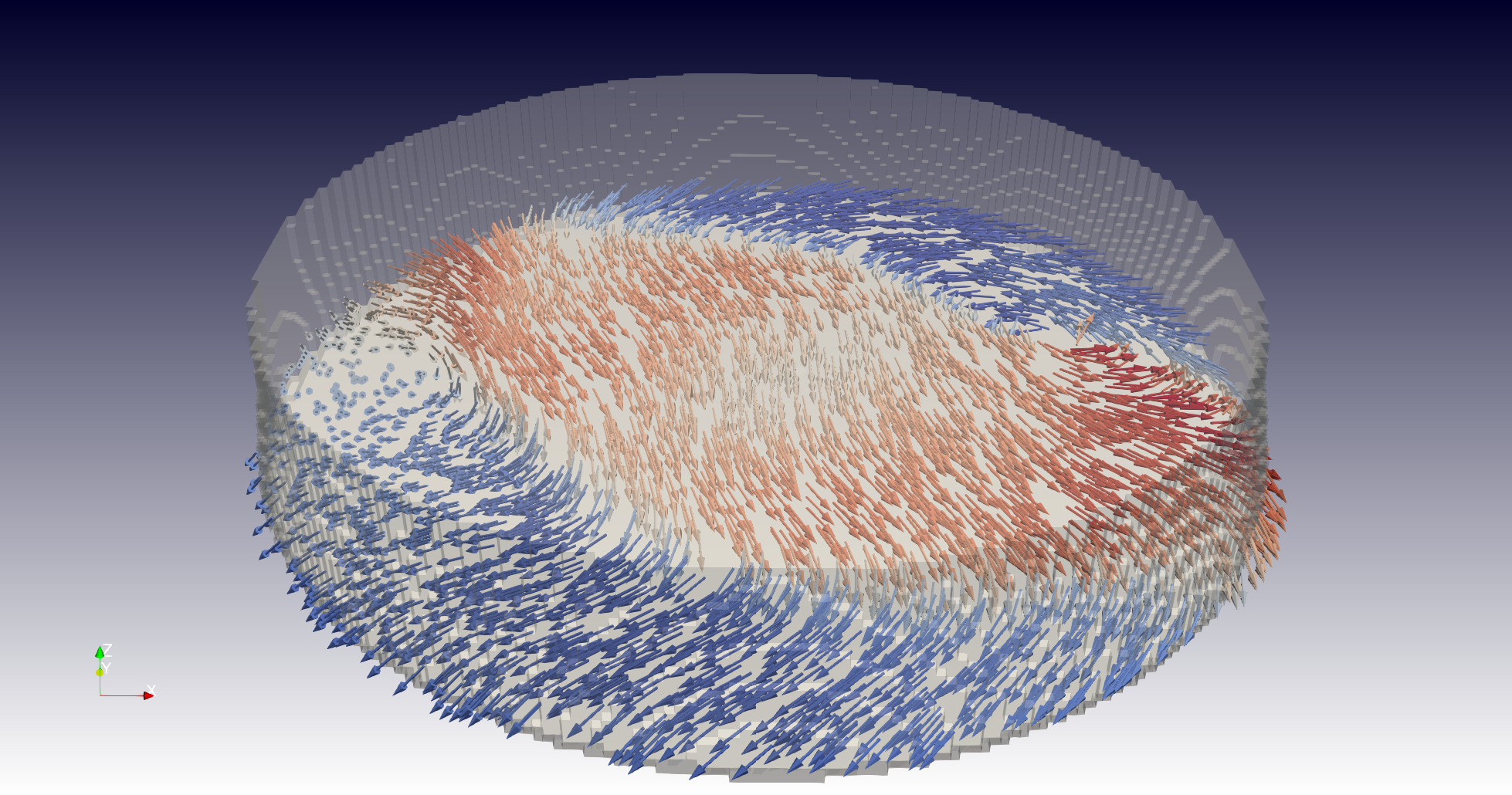 «Mit unserer Methode können wir zerstörungsfrei das Material durchleuchten und aus den Daten mehrere aufeinanderfolgende 3-D-Bilder der inneren magnetischen Struktur rekonstruieren», sagt PSI-Forscher Manuel Guizar-Sicairos. «Wir machen an jedem Messpunkt im Material die Ausrichtung des magnetischen Moments sichtbar und stellen diese dann als eine Art winzige magnetische Kompassnadel dar.»