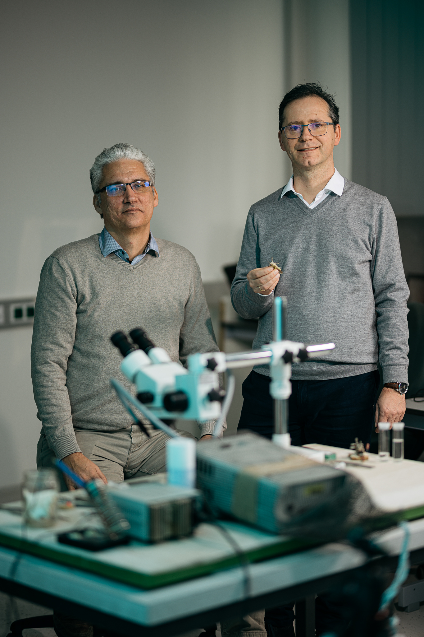 Das Team rund um den Zoologen Manfred Hartbauer bedient sich an den visuellen Fähigkeiten der Insekten. „Die bewegungsempfindlichen Augen der Wanderheuschrecken besitzen beinahe einen Rundumblick. Sie reagieren auf die rasche Kantenexpansion von sich annähernden Objekten reflexartig. So weichen einzelne Individuen in Schwärmen mit bis zu zehn Millionen Insekten gekonnt Hindernissen aus ohne dabei zu kollidieren“, erklärt Hartbauer. Dieses Anti-Kollisionsverhalten kann durch das Anbringen von Elektroden an zwei auf Nervensträngen sitzenden Neuronen der Wanderheuschrecken, den sogenannten Kollisionsdetektorneuronen, abgeleitet werden. „Über zwei gekrümmte Monitore werden den Insekten verschiedene Szenen vorgespielt, vergleichbar wie in einem IMAXX-Kino. Droht eine Kollision, werden bestimmte Nervenfasern aktiviert, was eine Abfolge von elektrischen Potentialen erzeugt. Die werden von uns abgenommen und die Daten weiterverarbeitet“, beschreibt der Bioniker den Ablauf des Versuchs.